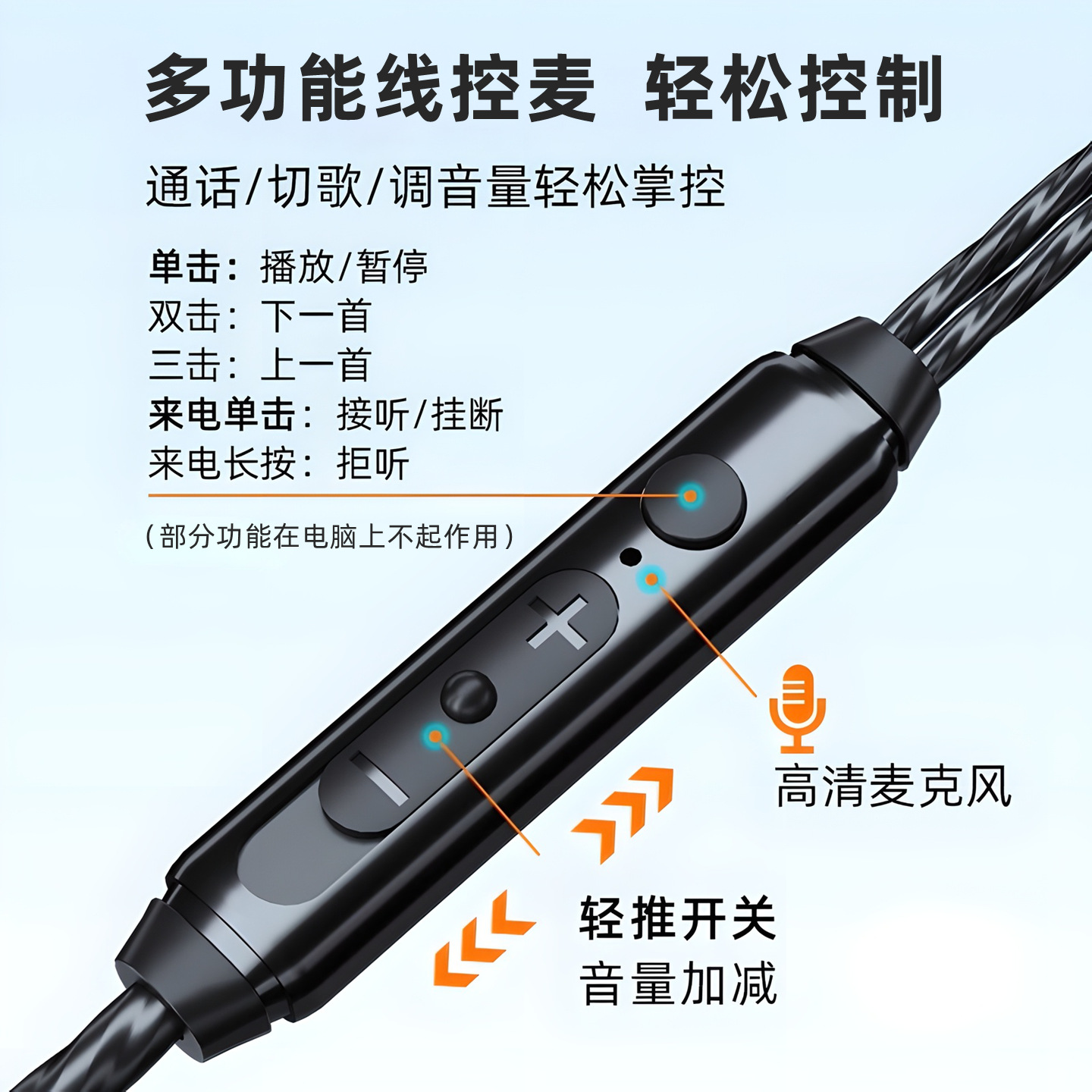 电脑耳机入耳式带麦有线笔记本二合一3米加长线声卡游戏通用