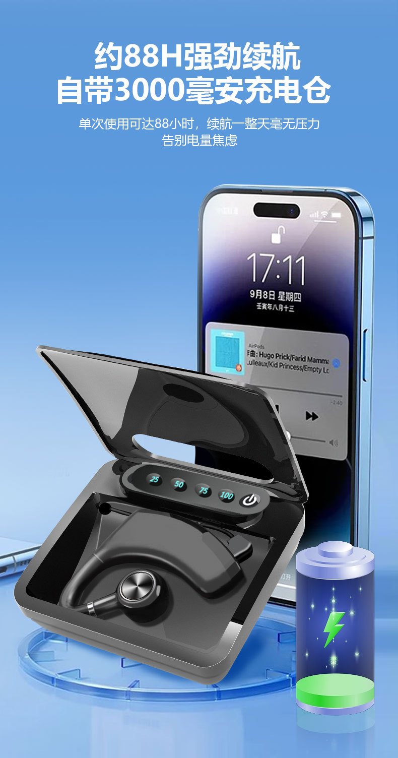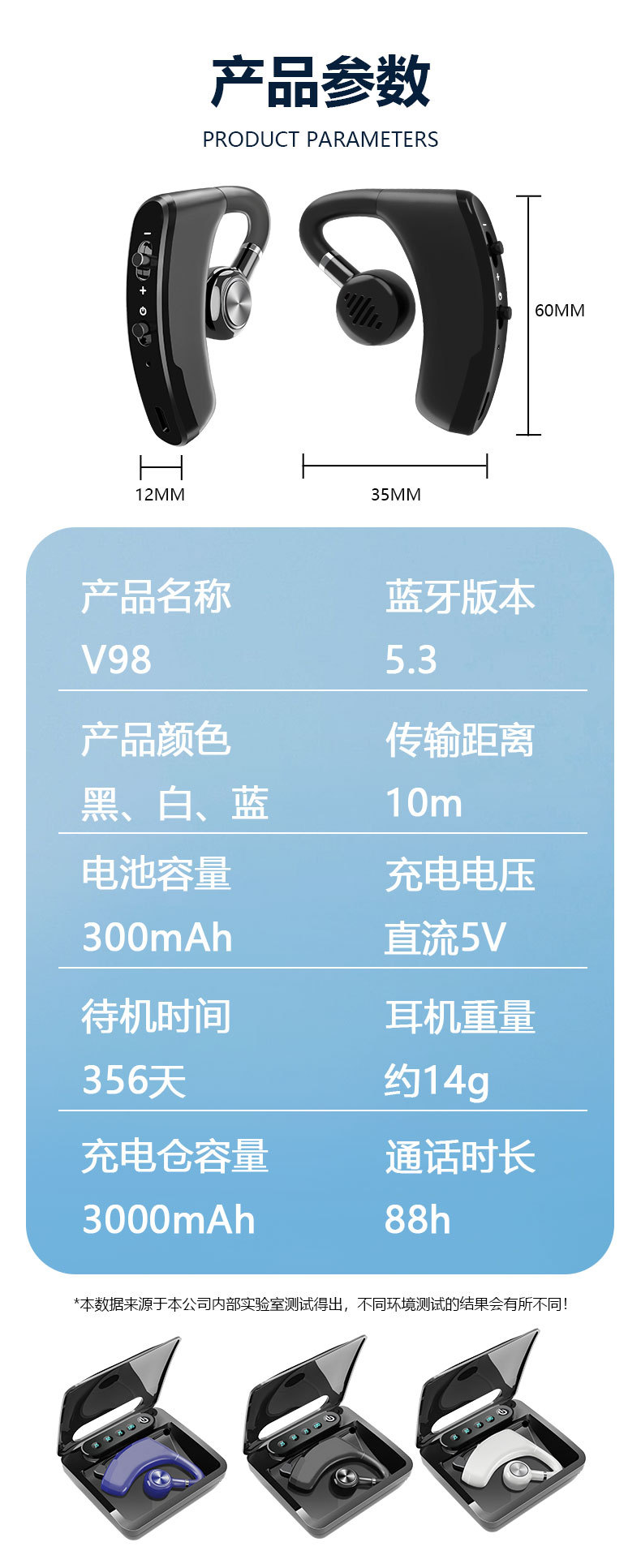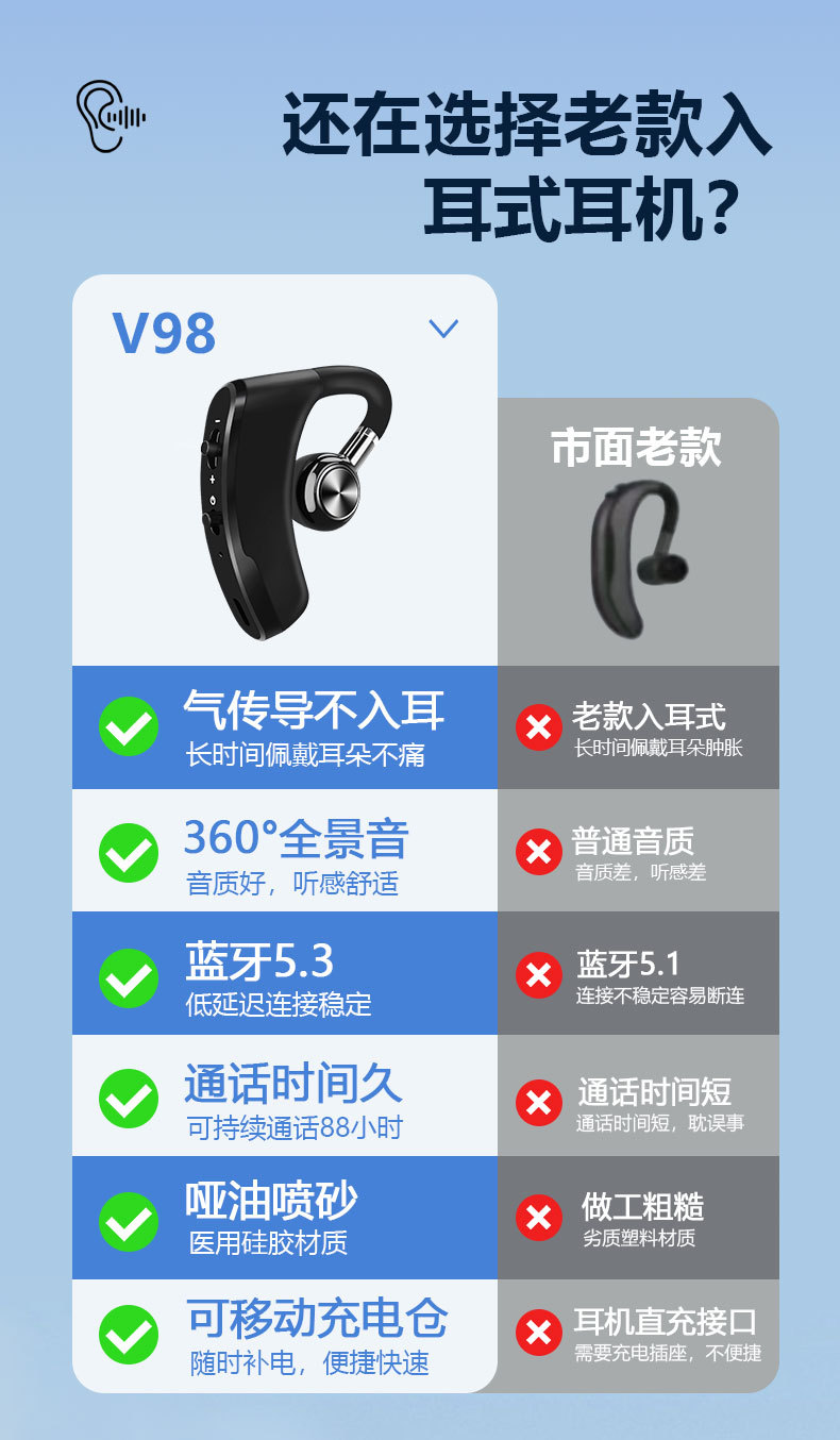 V98蓝牙耳机新款单耳商务车载通话无线挂耳式无线不入耳佩戴