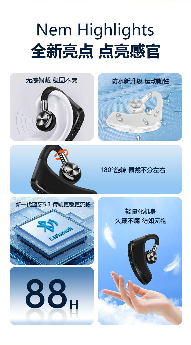 无线蓝牙耳塞式耳机单耳不入耳OWS传导车载商务耳夹式不伤长续航