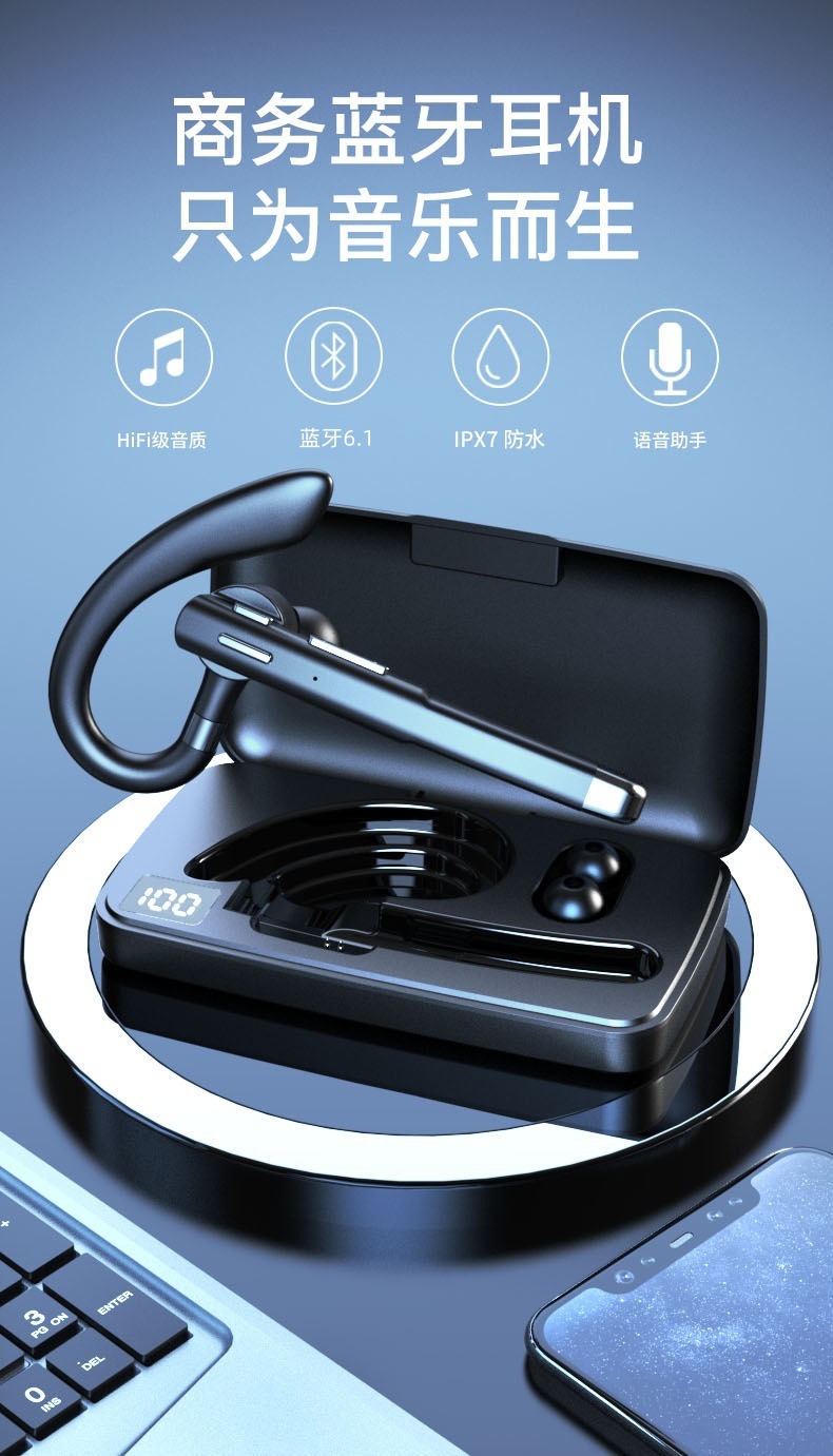 爆款开车商务专用无线蓝牙耳机大电量带数显挂耳式运动耳机