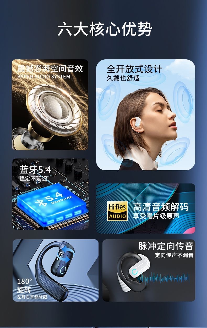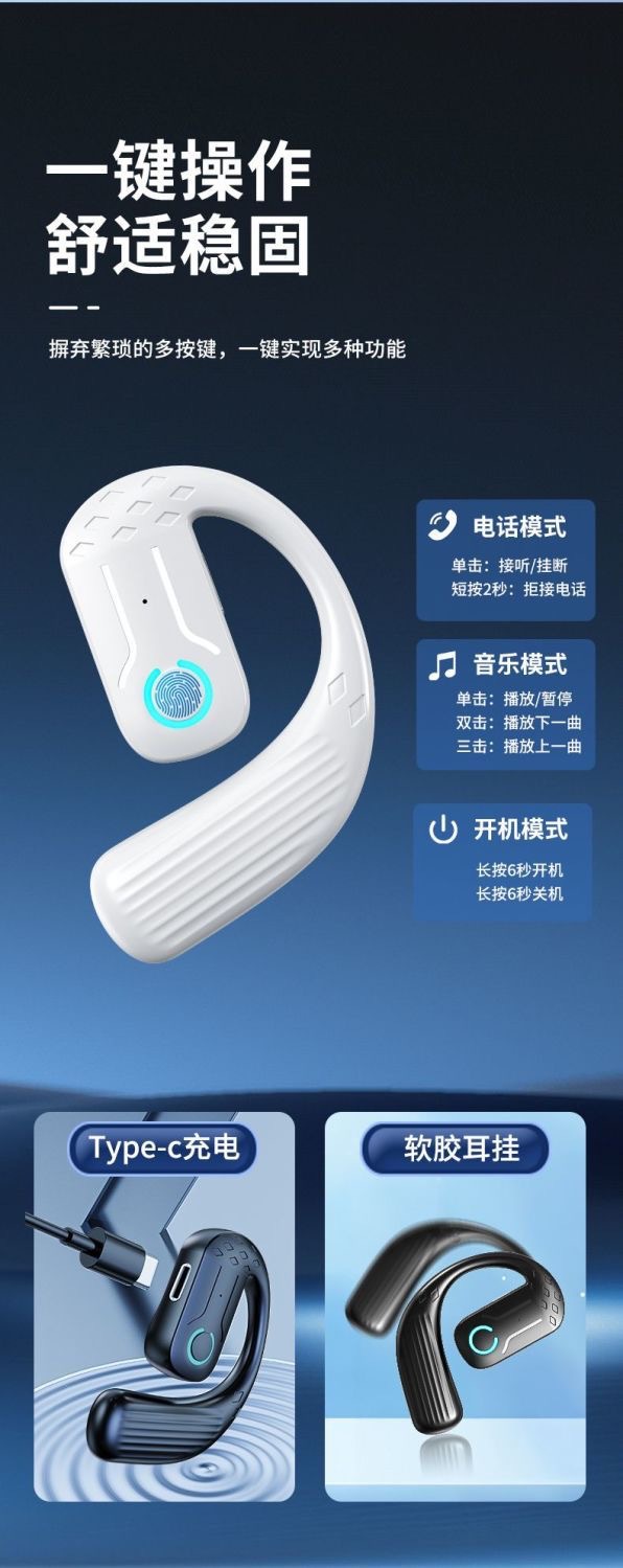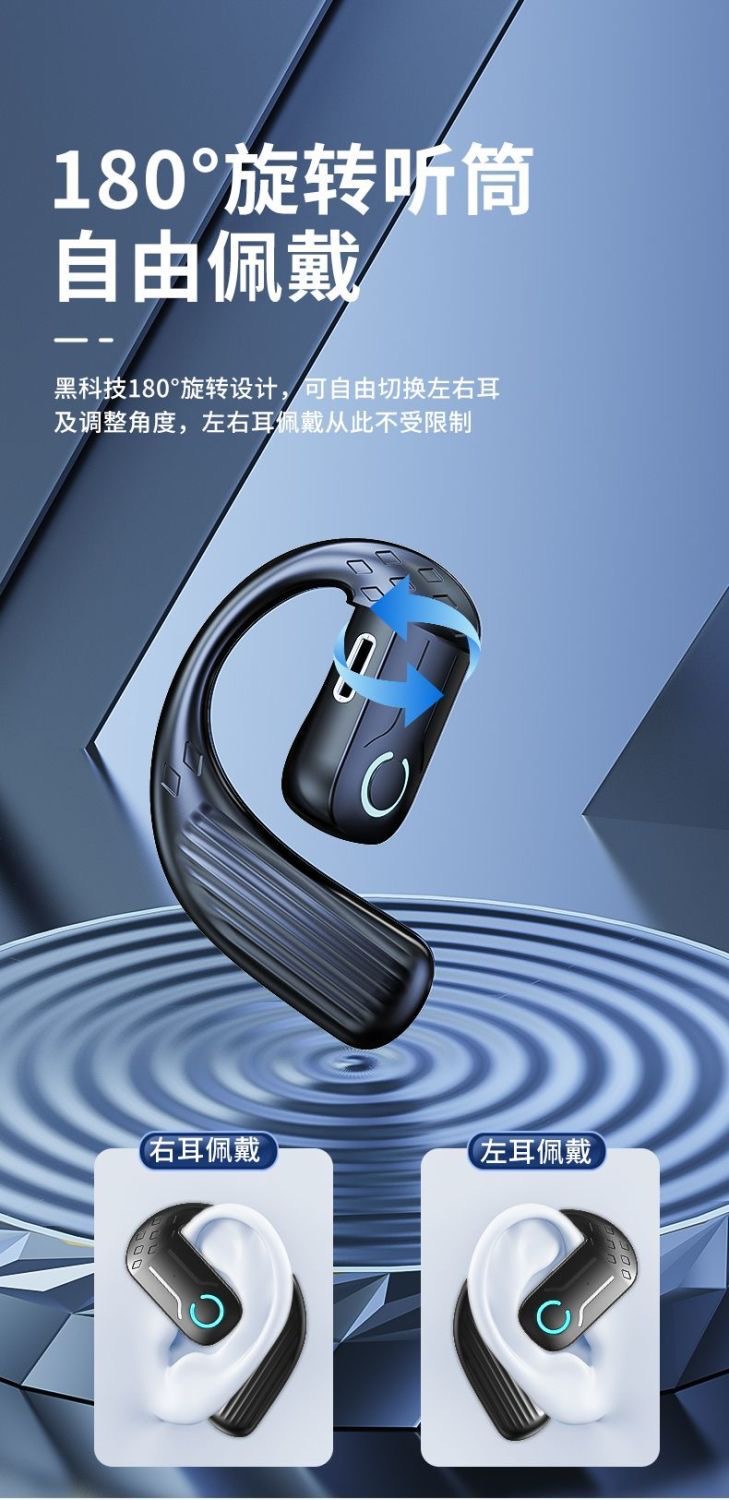 左右耳可旋转数无线跑步单耳挂耳式通用超长续航蓝牙耳机蓝牙5.4