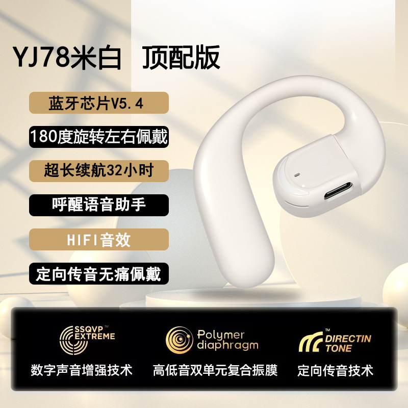 顶配版-米白色【升级蓝牙5.4左右耳佩戴可旋转超长续航ACS立体环绕音效】