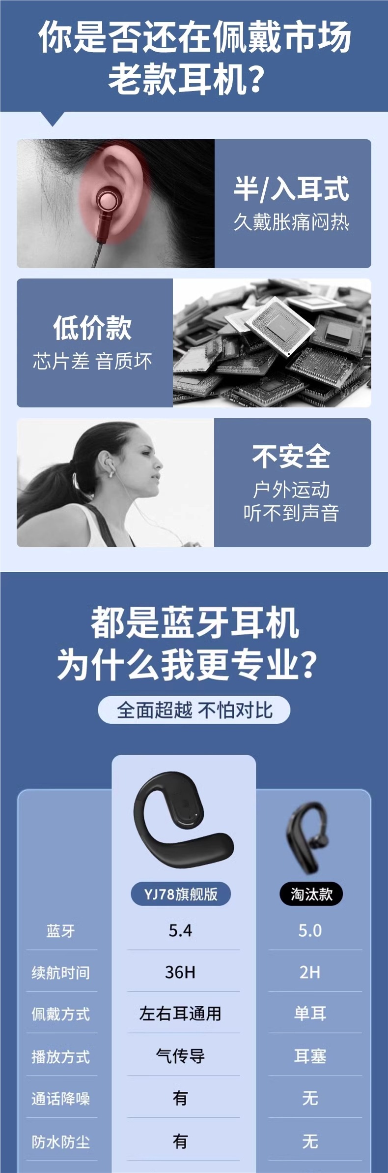 OWS蓝牙耳机单耳新款无线运动降噪挂耳式超长续航