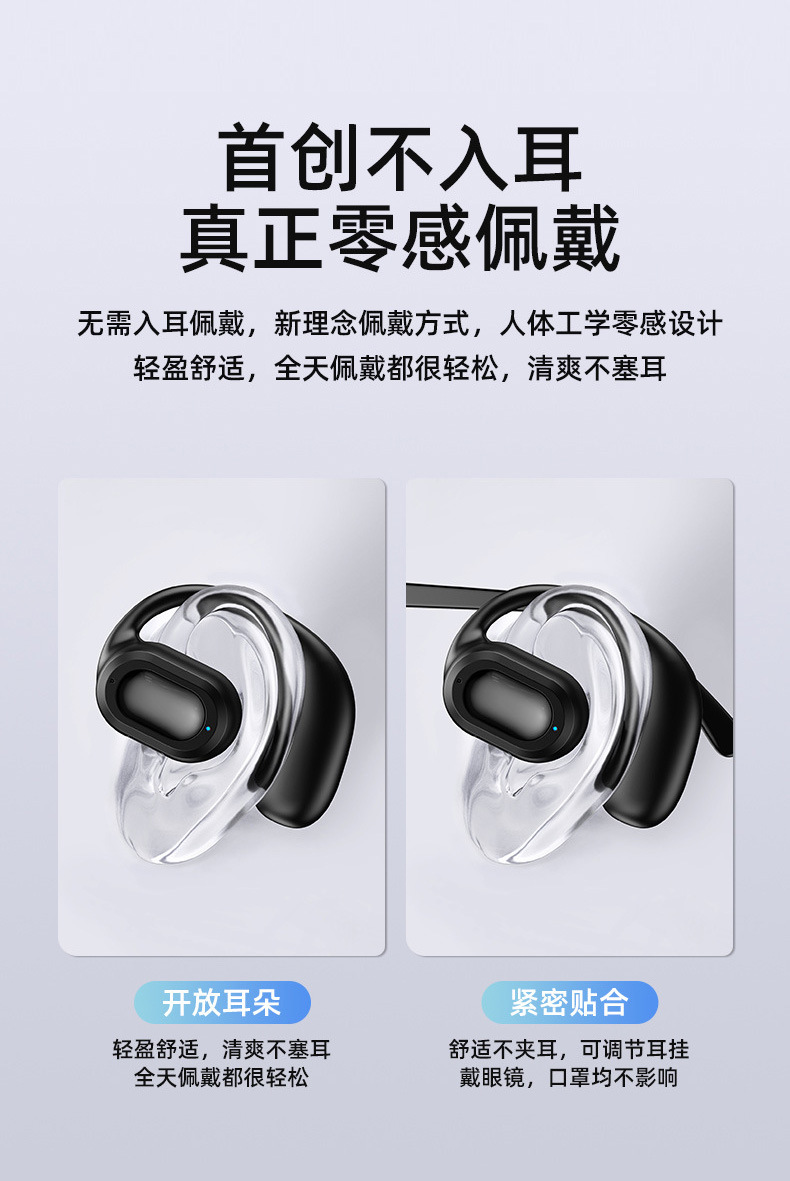 2025新款不入耳蓝牙耳机气骨传导挂耳开放式超长续航单耳开车专用
