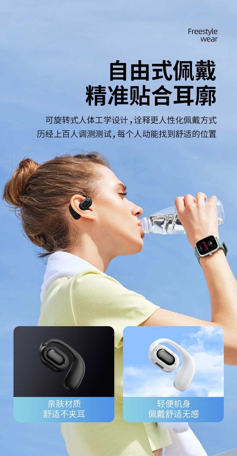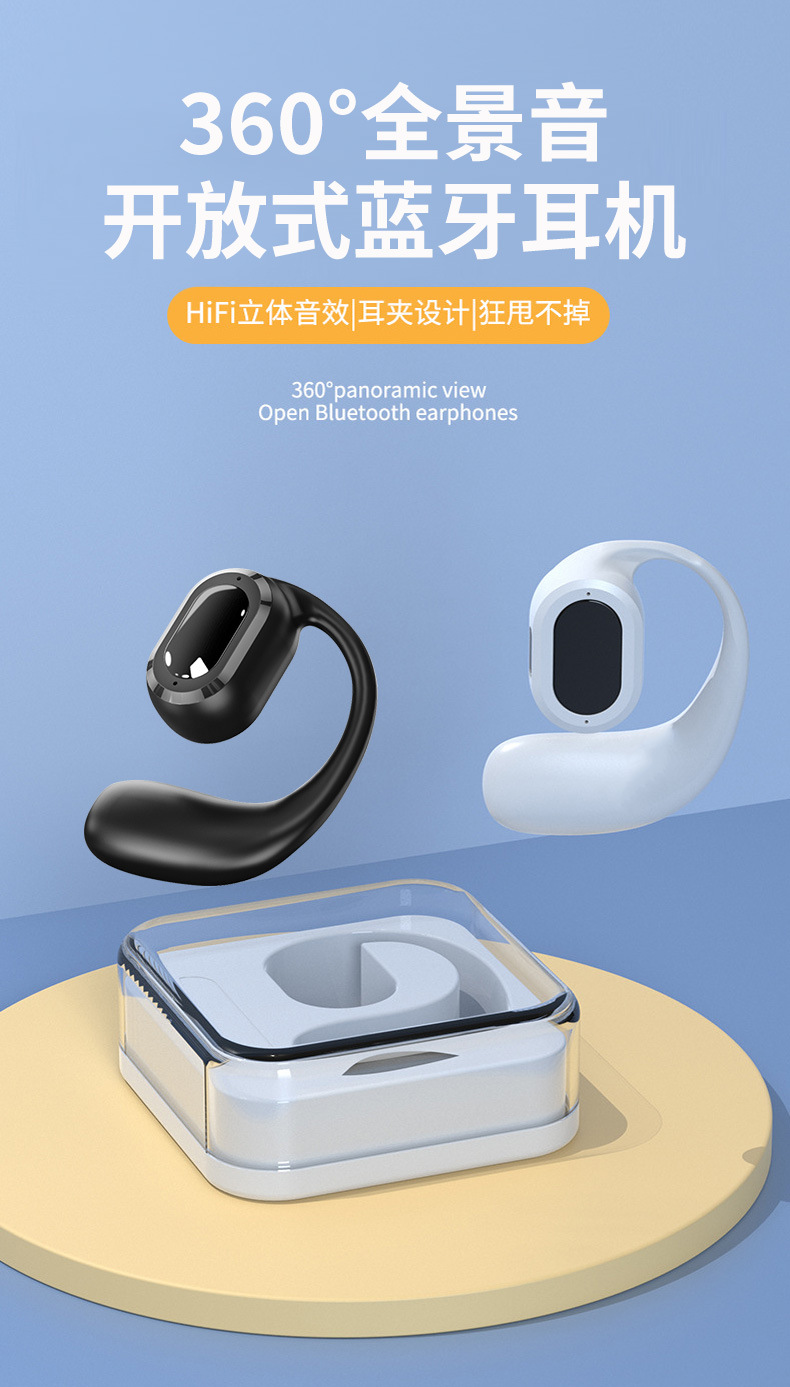 2025新款耳夹式无线蓝牙耳机M136高颜值立体音效降噪运动跑步耳机