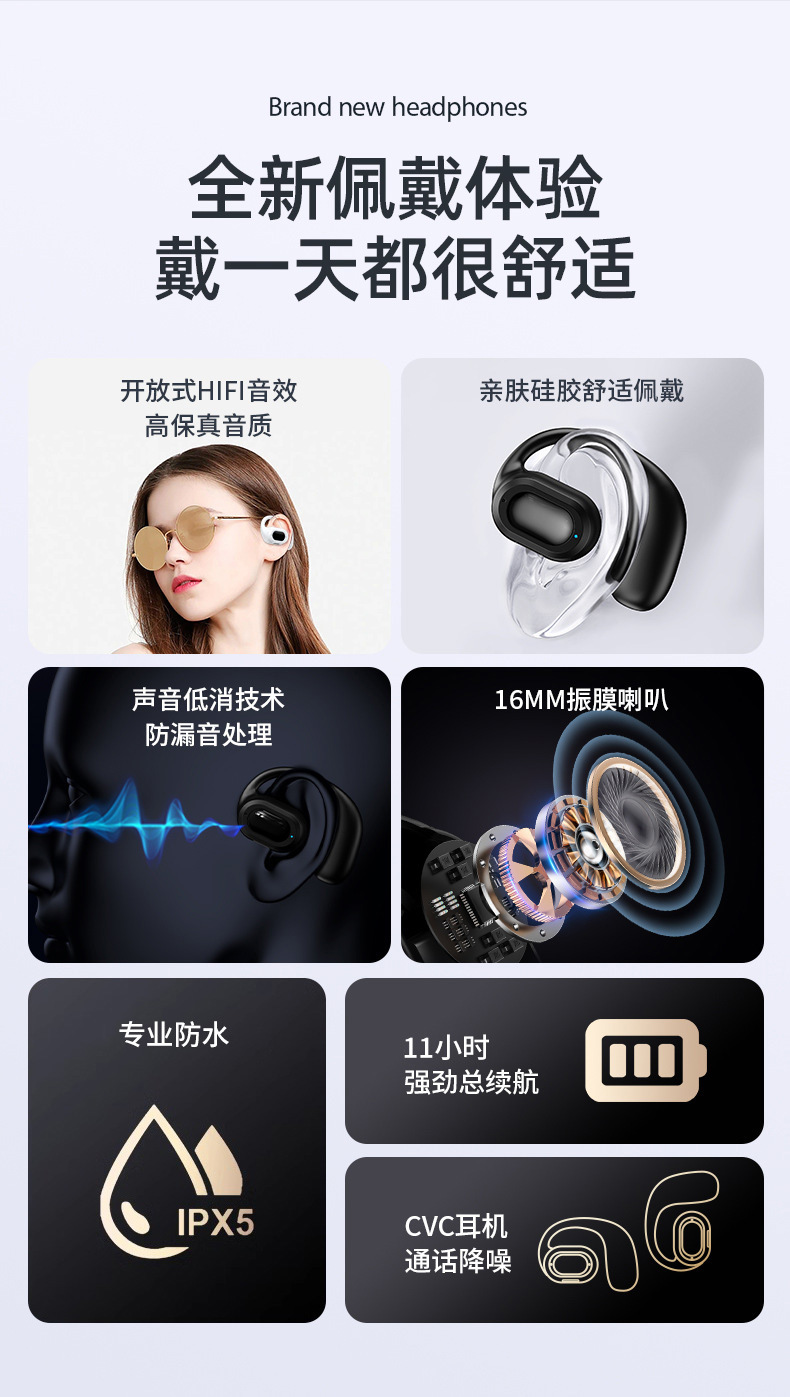 迷你OWS挂耳式单耳蓝牙耳机超长待机不入耳通话跑步无线大电量