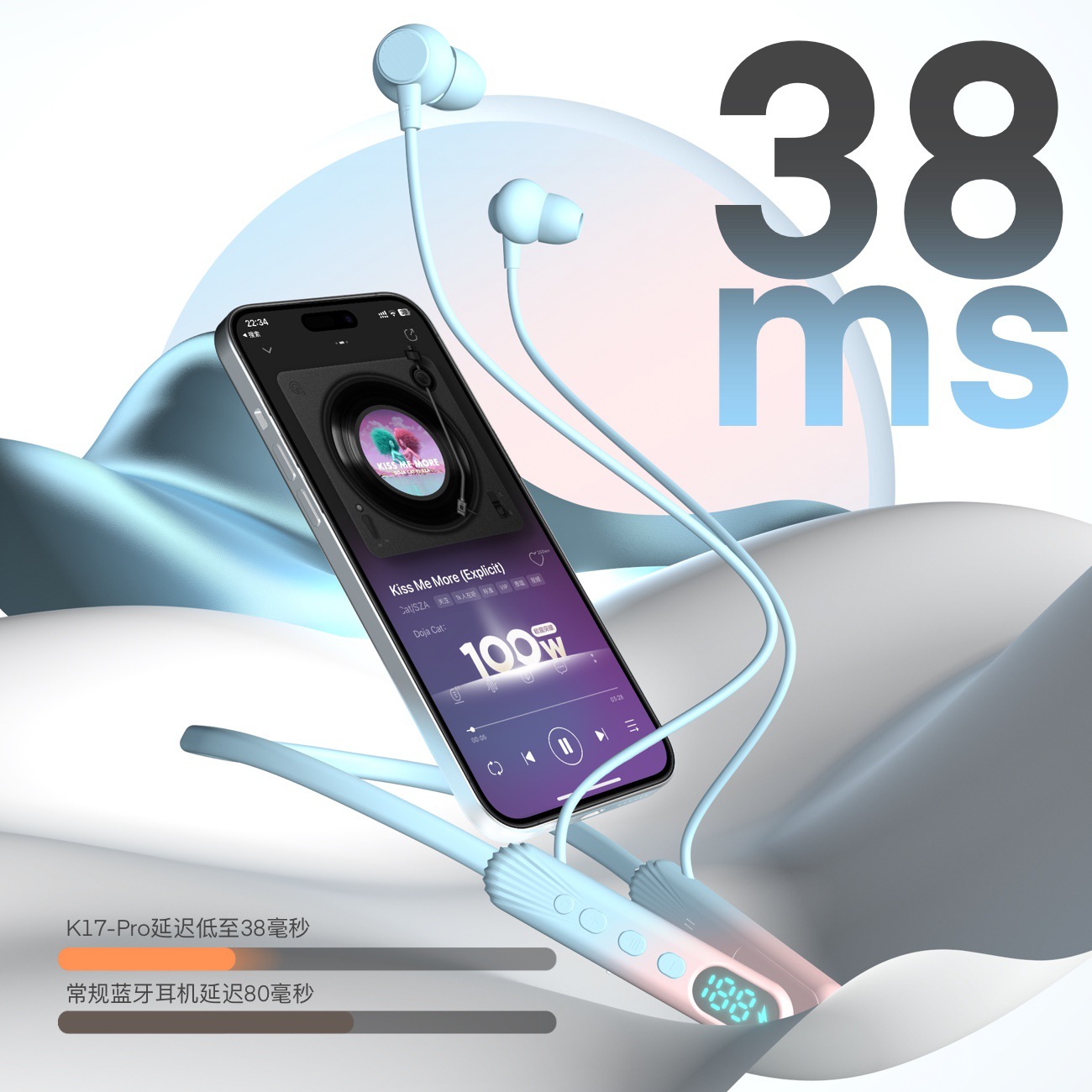 女生无线挂脖式蓝牙耳机新款降噪颈挂运动耳机超长续航大电量