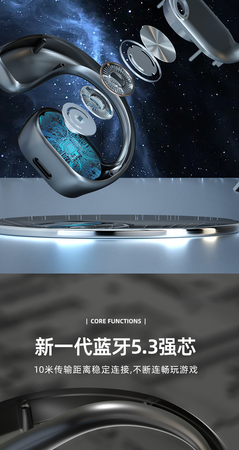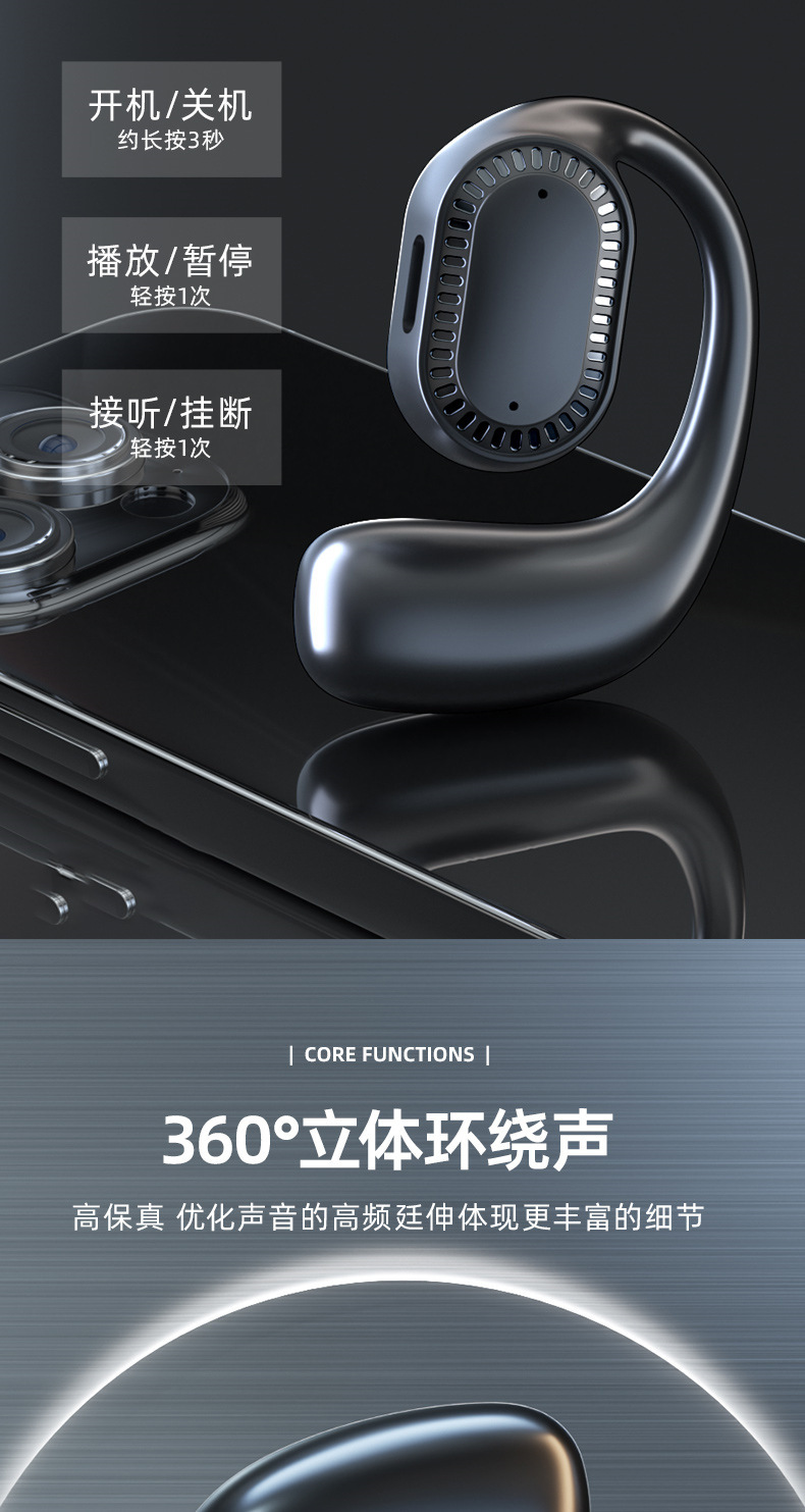 新款OWS开放式无线蓝牙耳机5.3挂耳式不入耳运动游戏单耳超长续航