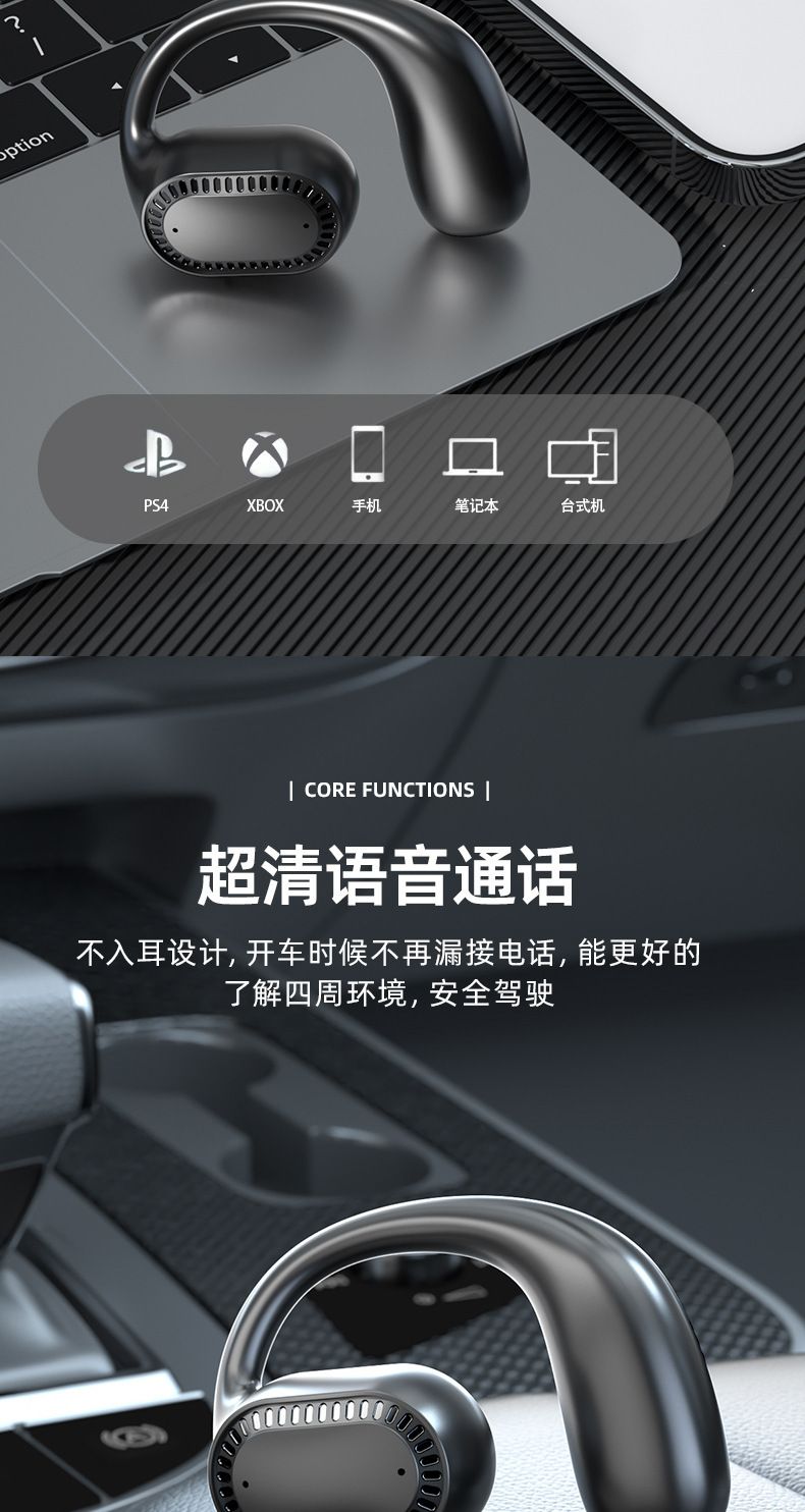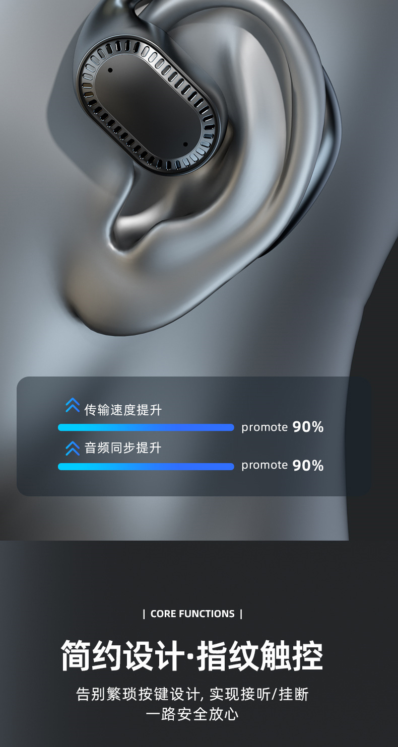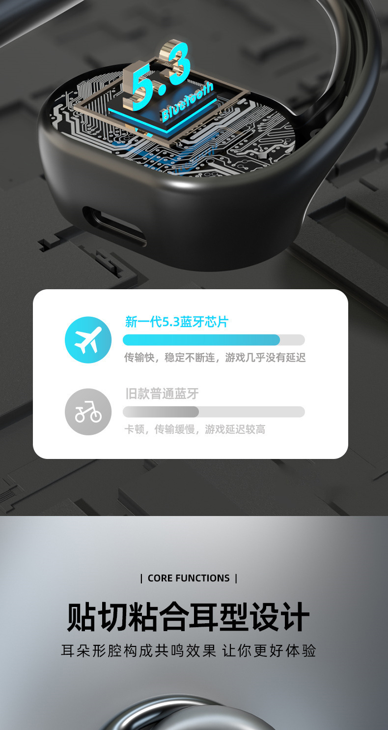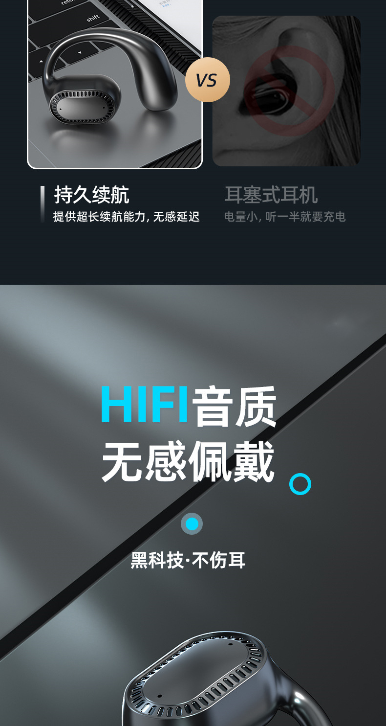 新款开放式蓝牙耳机真无线夹耳式气骨传导超长续航高音质私模降噪