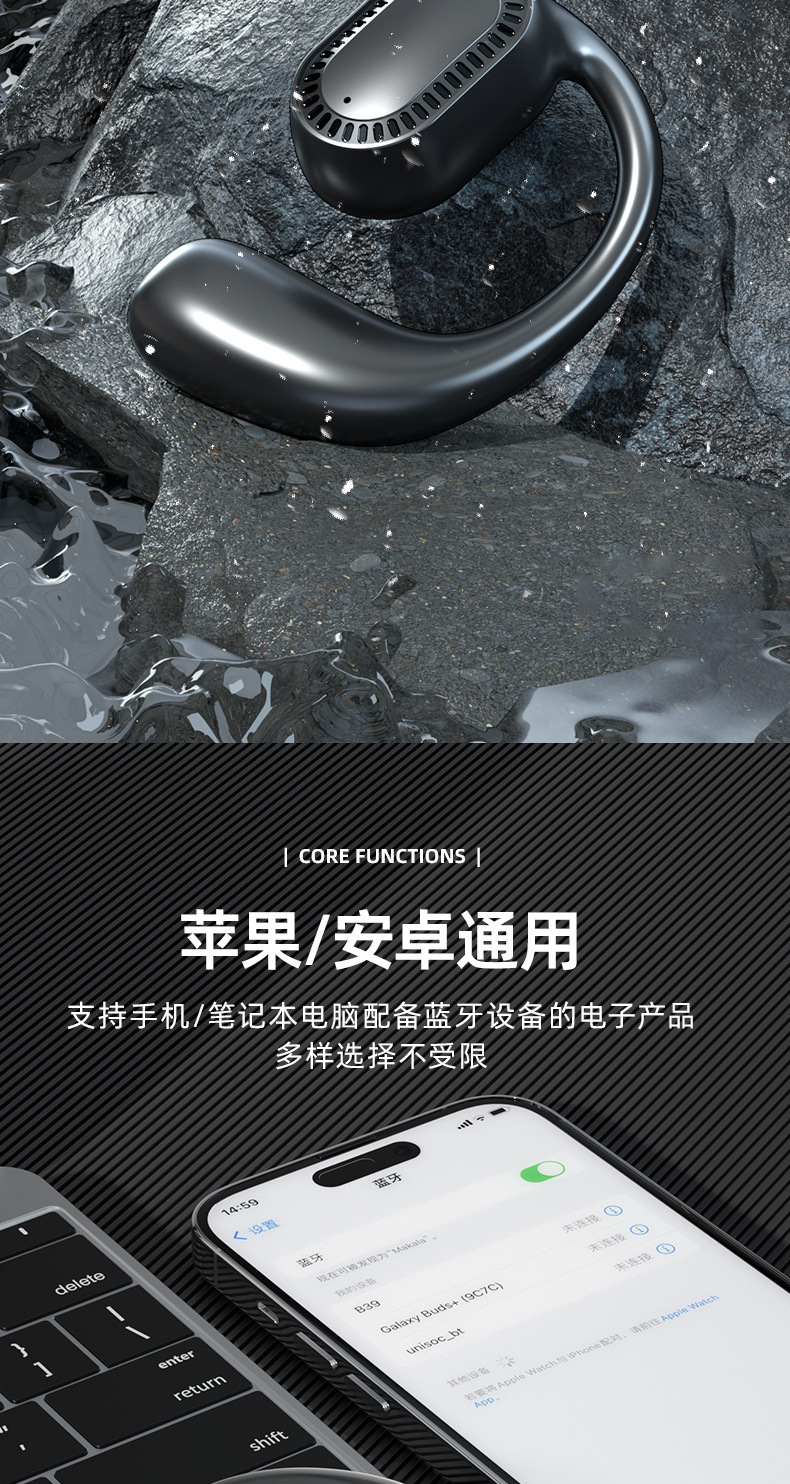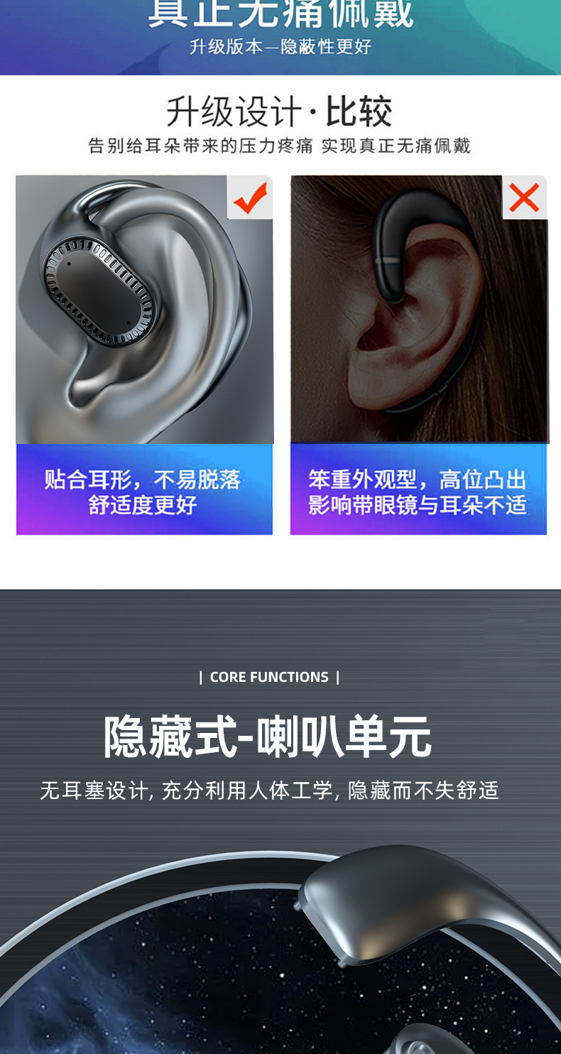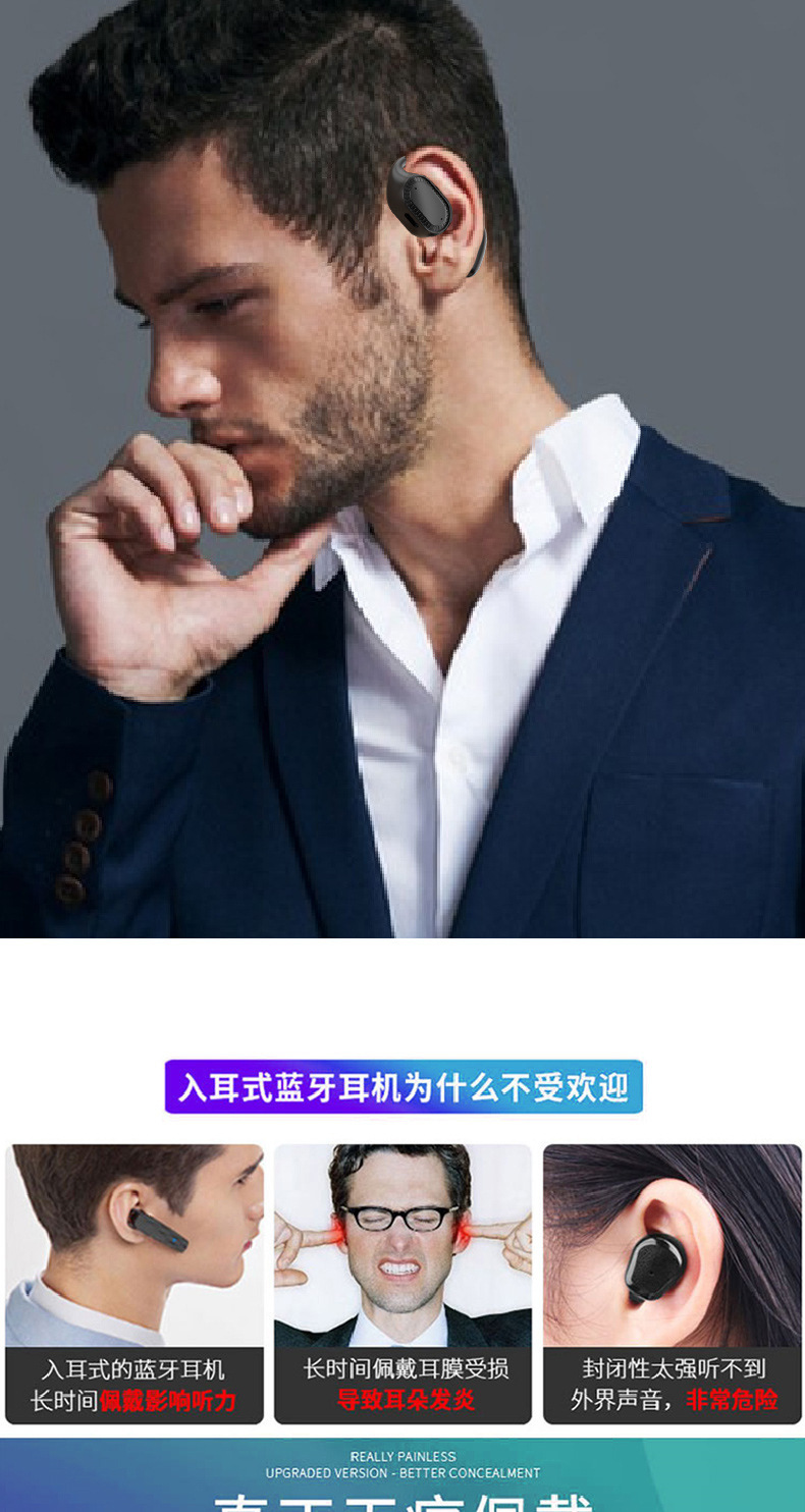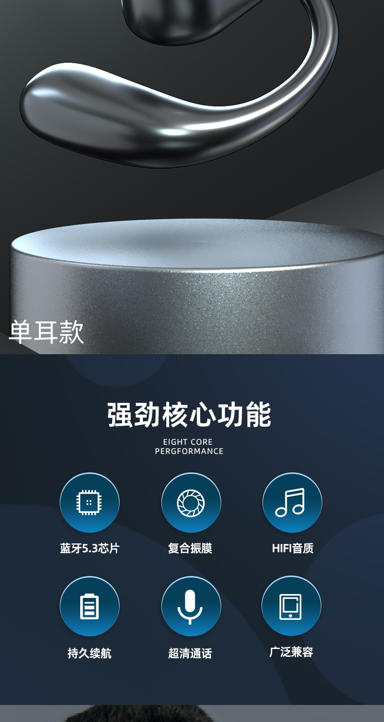 新款开放式蓝牙耳机真无线夹耳式气骨传导超长续航高音质私模降噪