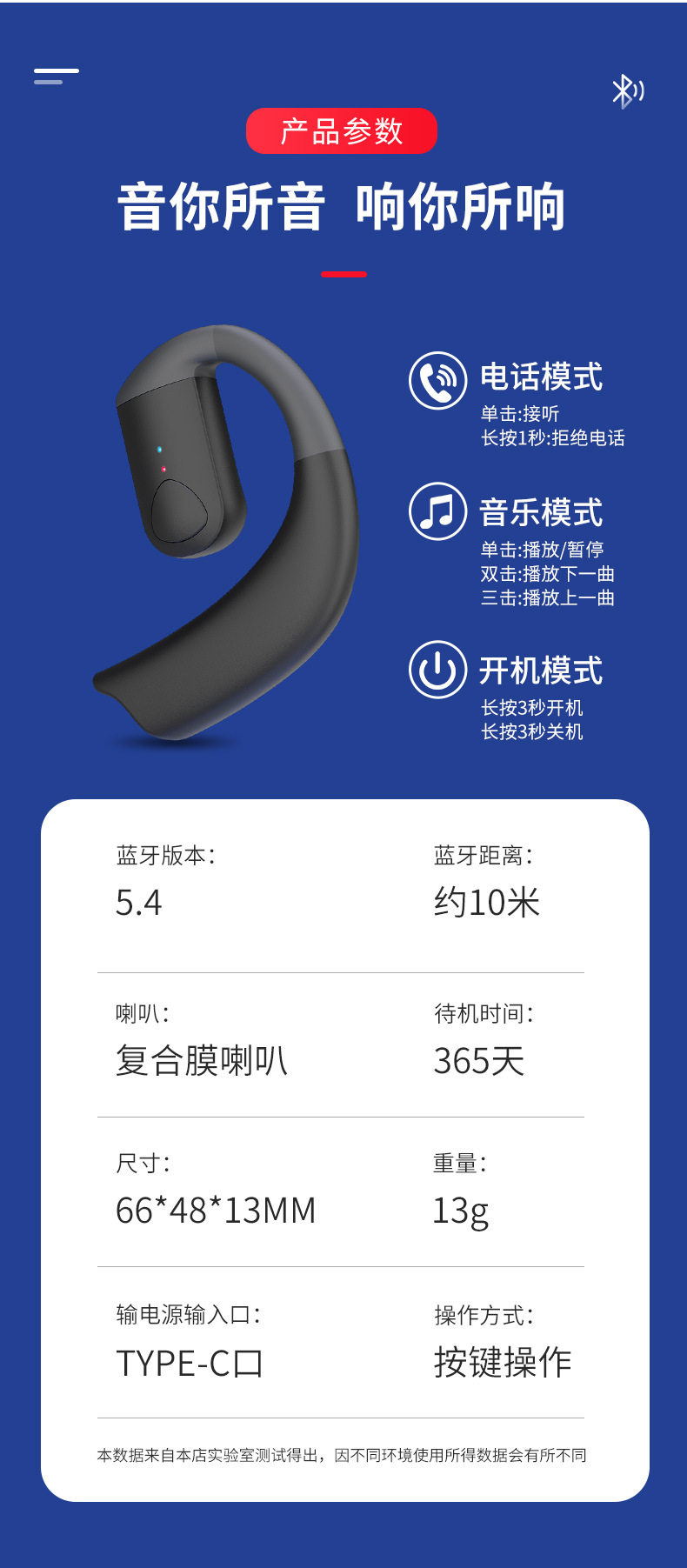 无线商务单耳蓝牙耳机开放式不入耳可换电池带仓骑手快递司机听书