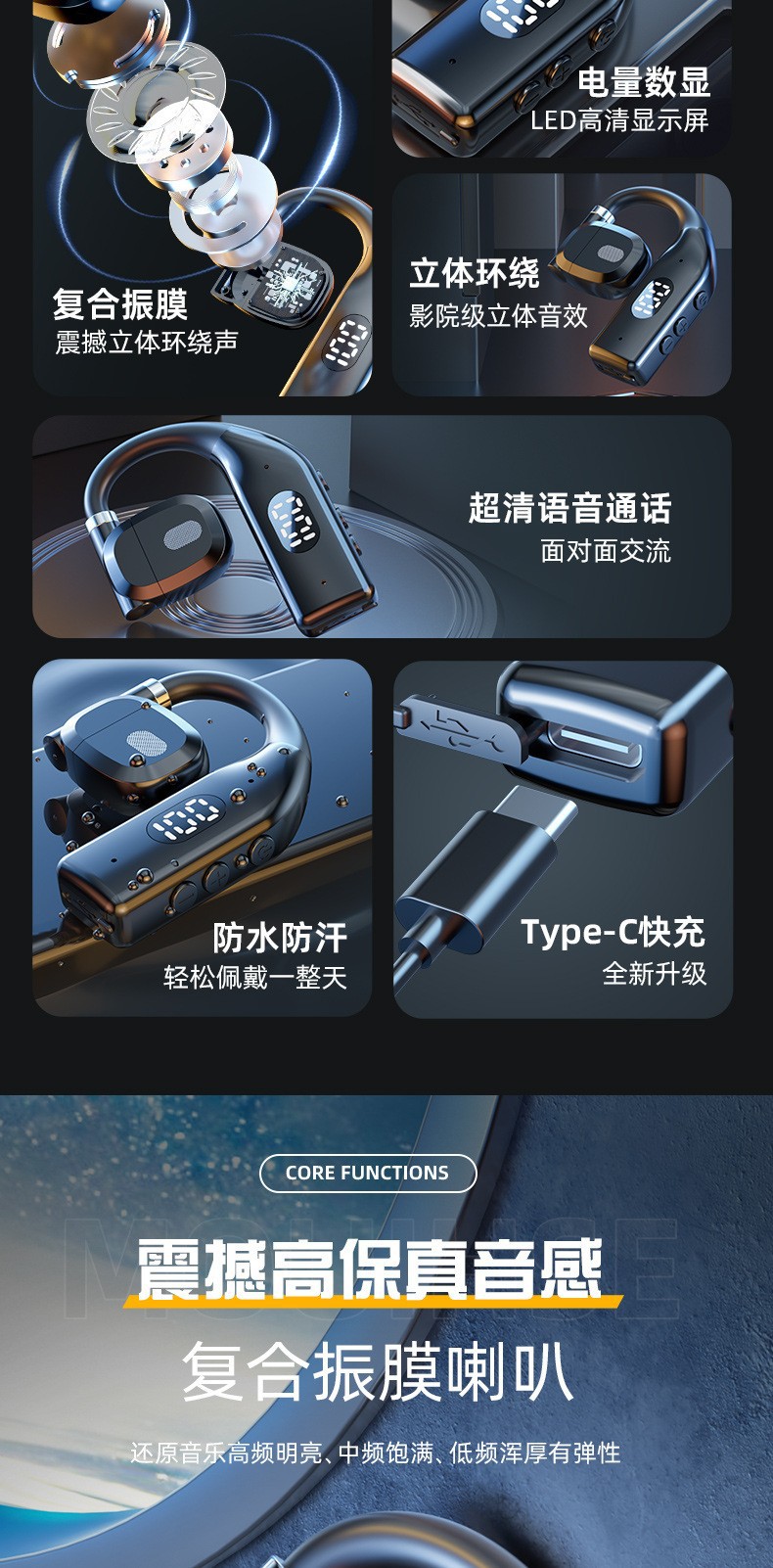 - 旗舰版【智能数显黑色】来电报号+超清音质+12H超长续航