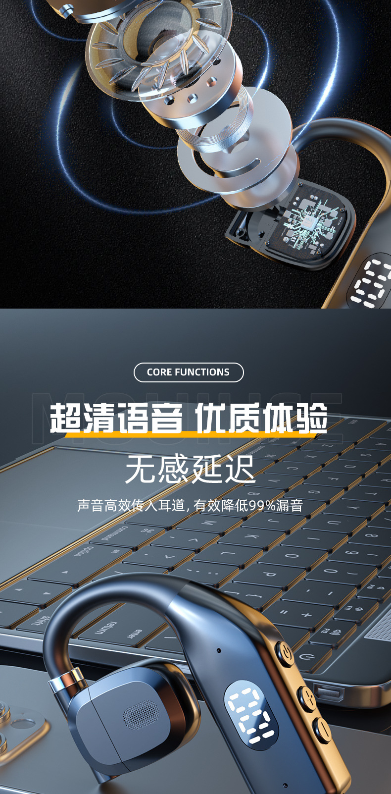 AI翻译耳机爆款小椰球OWS蓝牙耳机挂耳式不入运动长续航