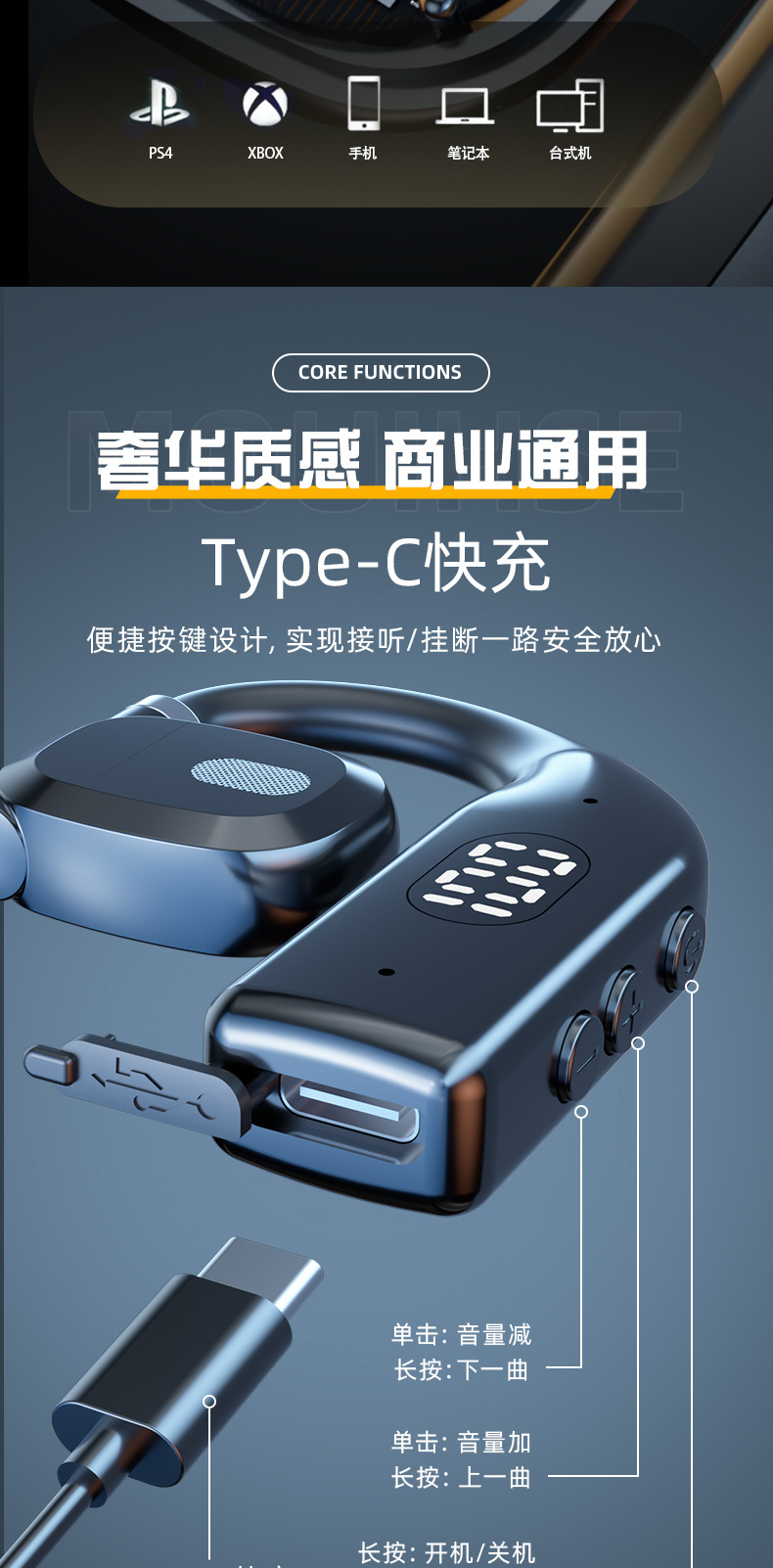耳夹蓝牙耳机TWSC9新款私模软硅胶LED数显超长续航高颜值