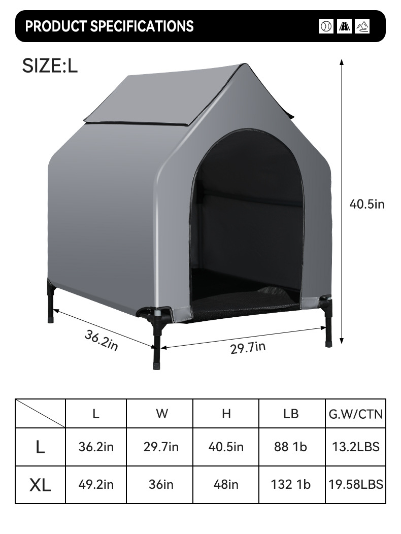 宠物行军床户外狗狗防晒带帐篷狗床大型犬防撕咬网床夏季透气狗窝