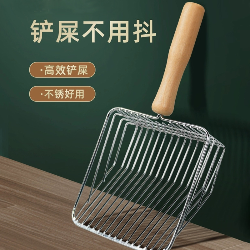 实木柄金属大号猫砂铲猫咪铲屎神器耐用易清洗漏砂铲宠物用品