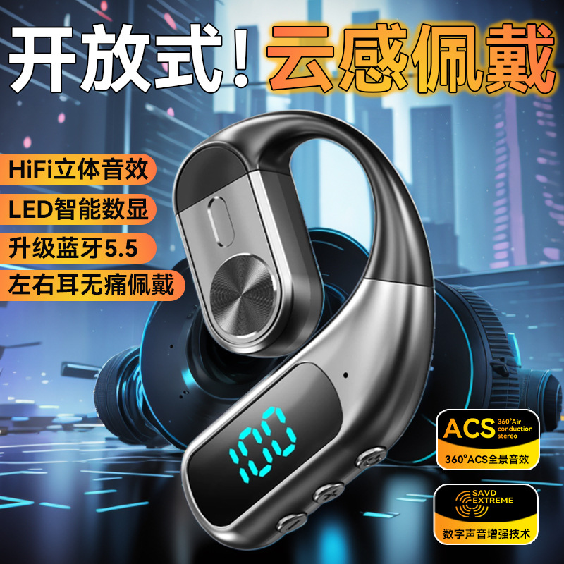 K1蓝牙耳机气传导商务单耳立体声挂耳式运动不入耳不伤耳大屏数显
