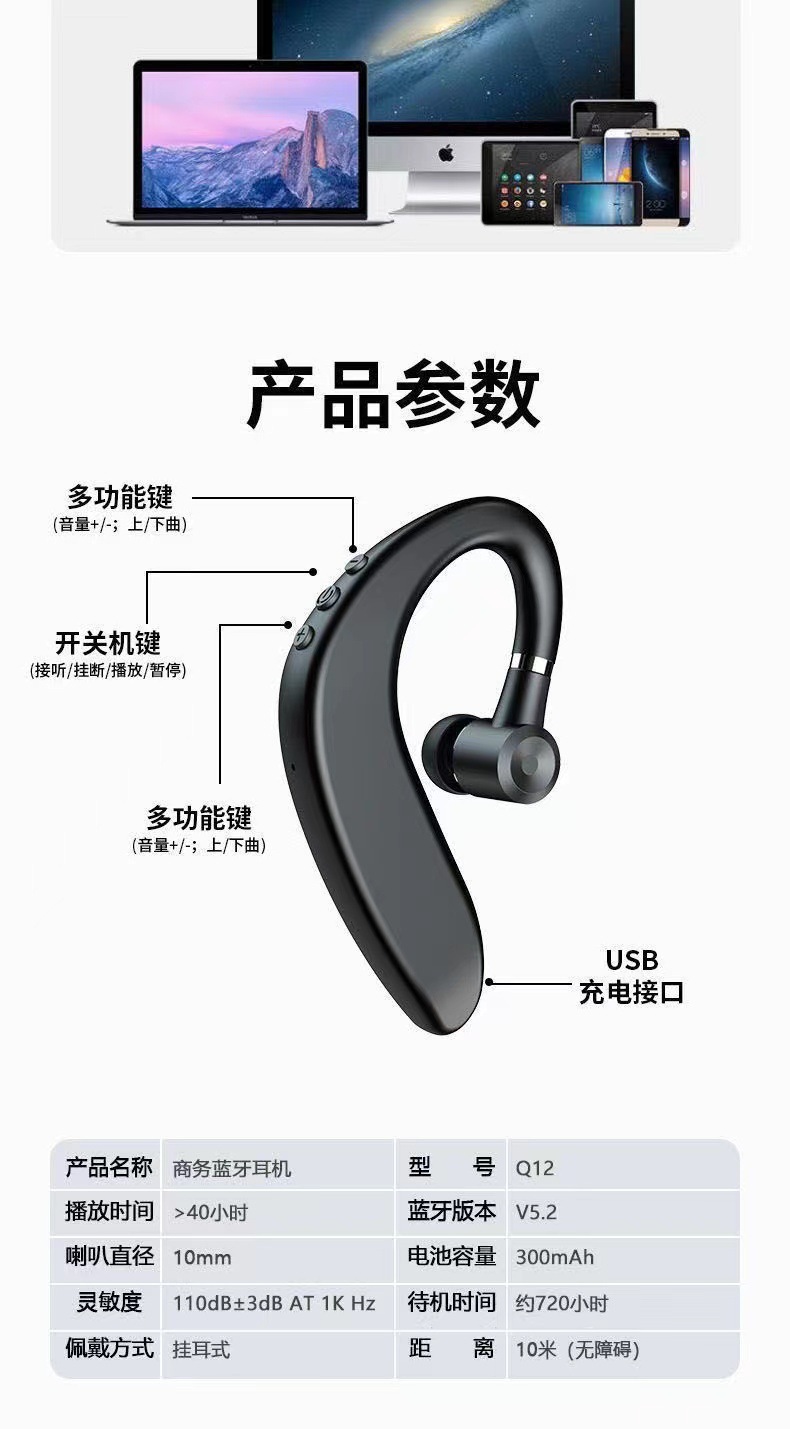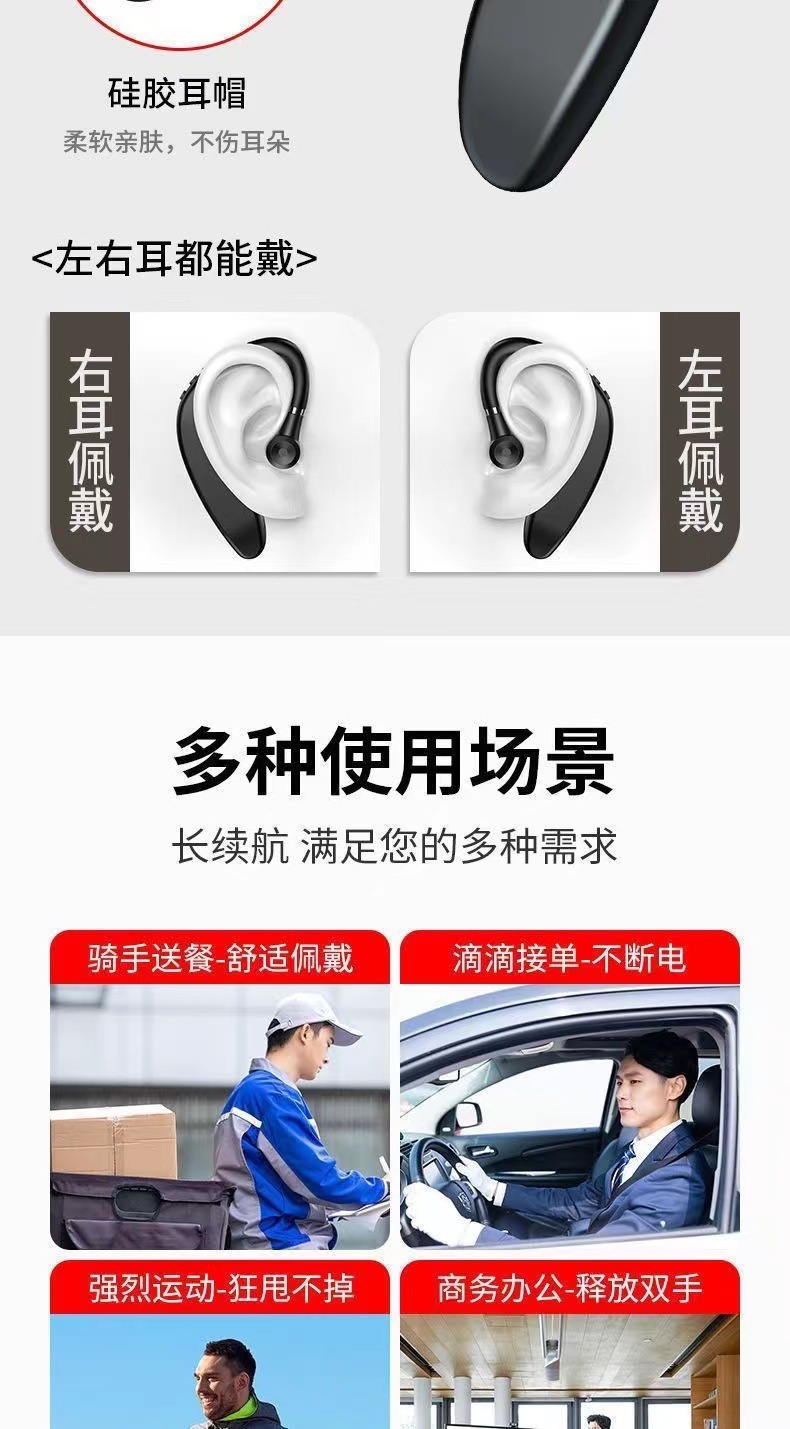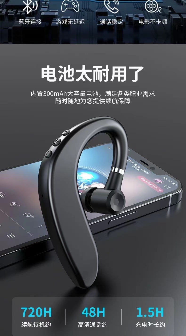 s109单耳挂耳式无线蓝牙耳机车载高清通话运动超长续航降噪
