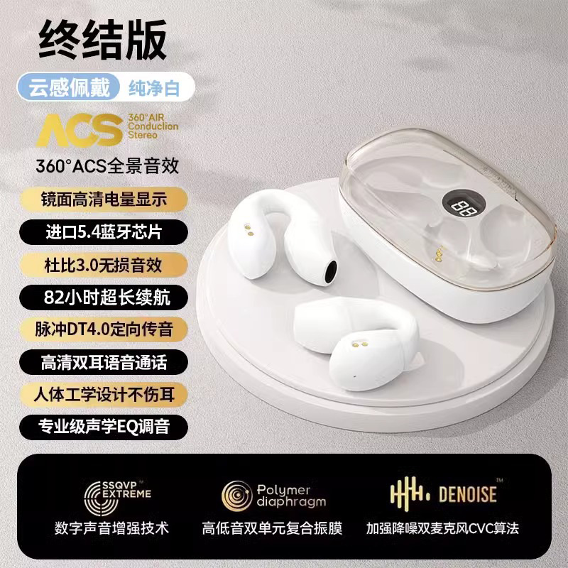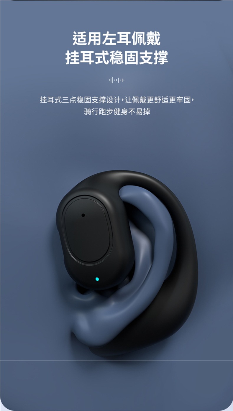 通数显单左耳挂蓝牙耳机超长续航按键版OWS不入耳传导运动无线