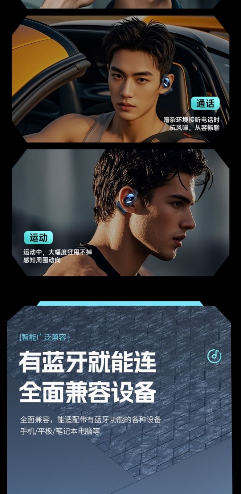 严选潮电爆款华强北挂耳式不入耳蓝牙气传导的耳机无线跑步运动