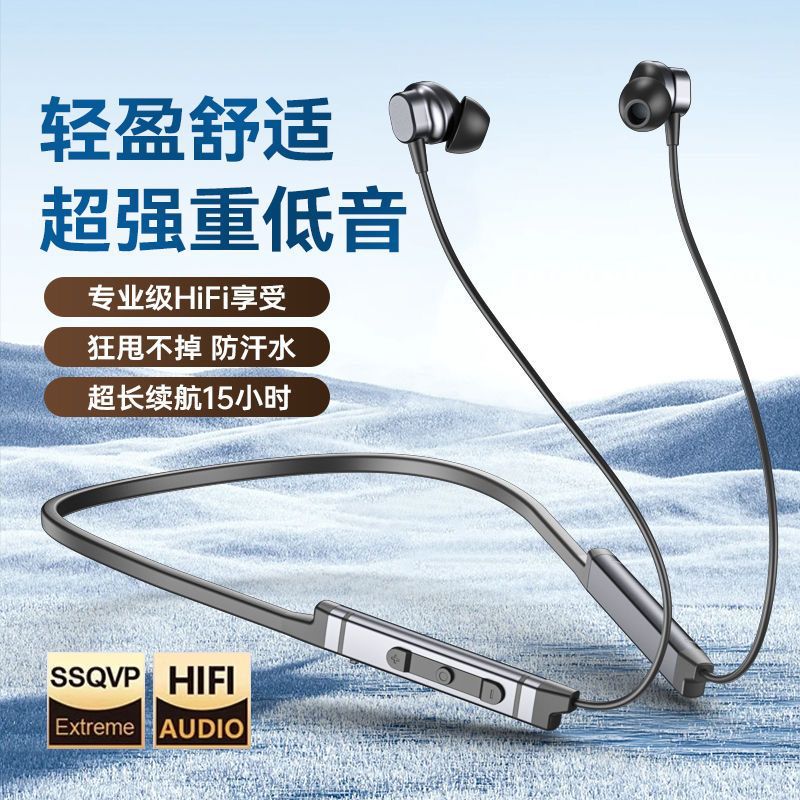 HHW-2无线蓝牙耳机入耳颈挂脖式跑步立体声大容量运动磁吸耳机