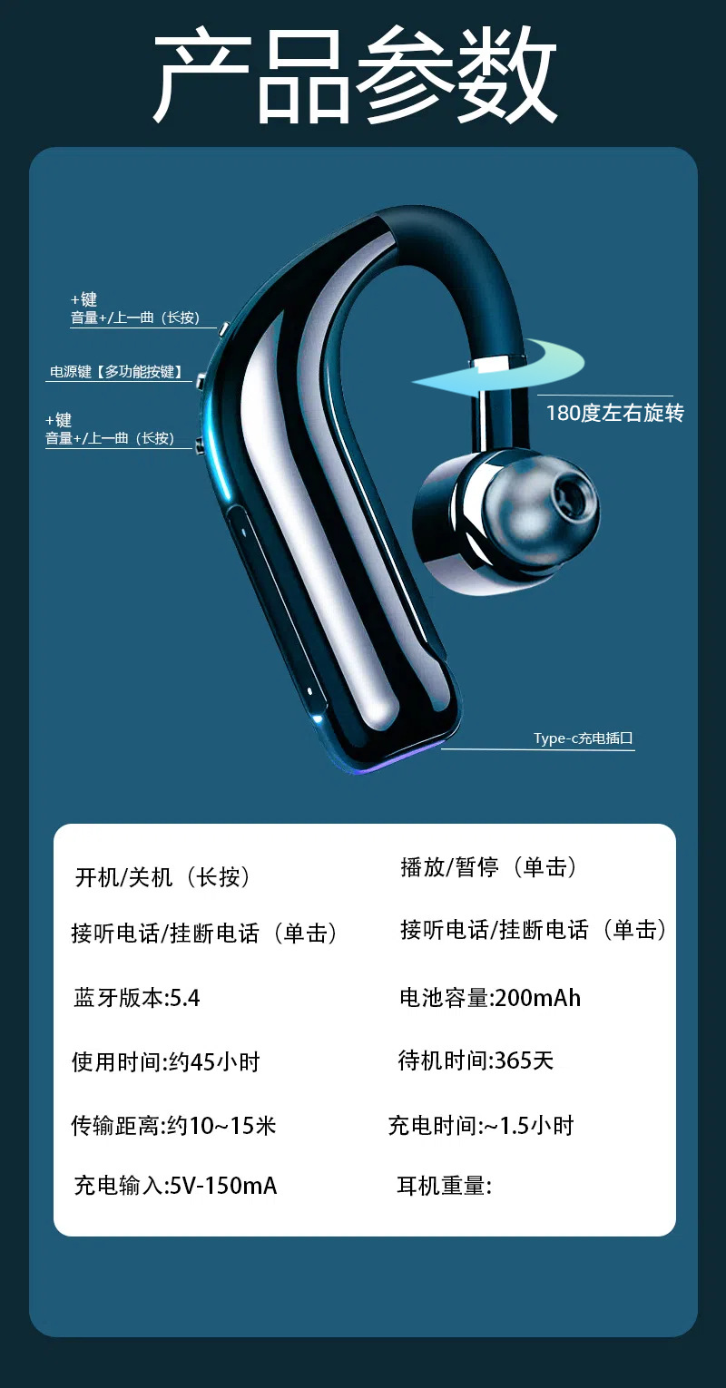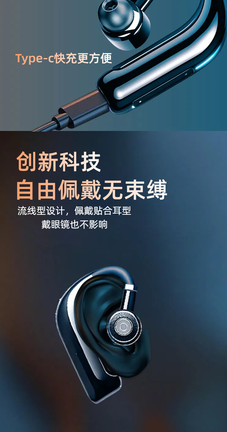大电池高续航单耳旋蓝牙耳机挂耳式不漏音运动商务型耳机