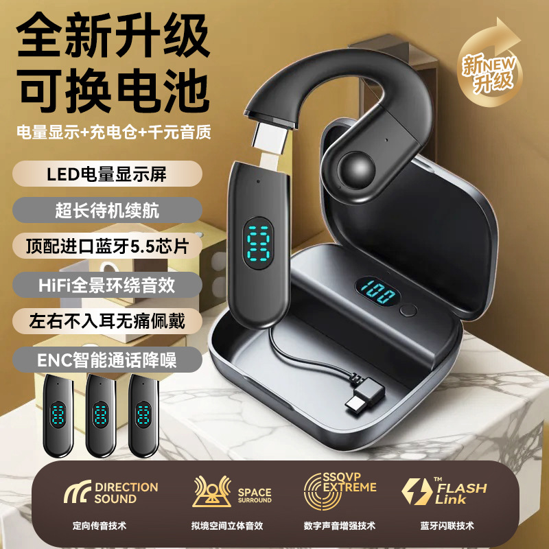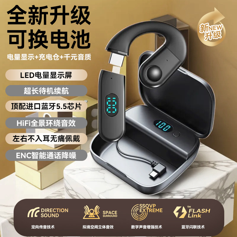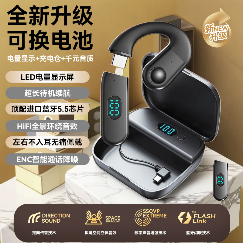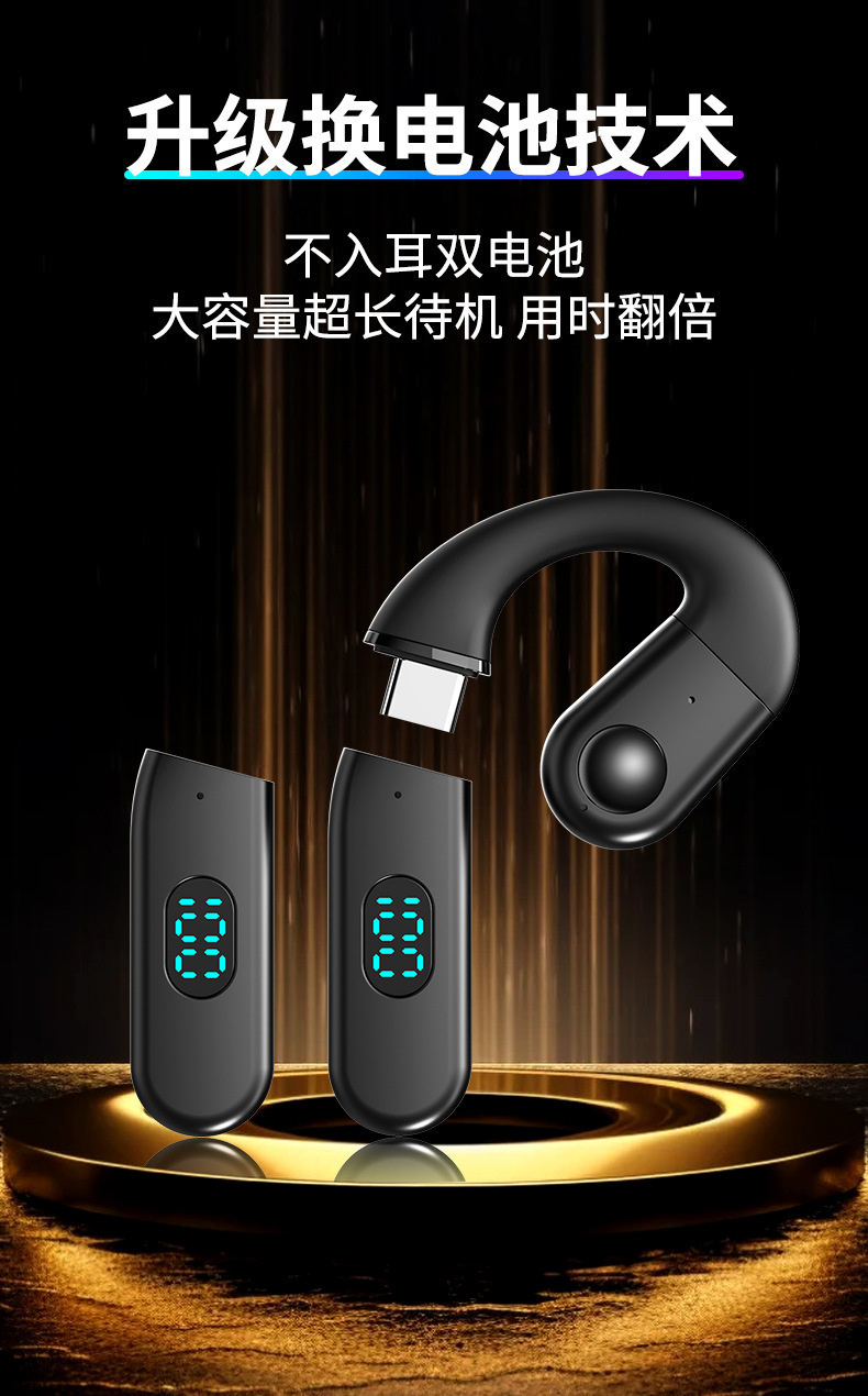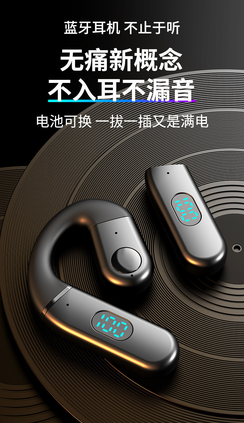 无线商务单耳蓝牙耳机开放式不入耳可换电池带仓骑手快递司机听书