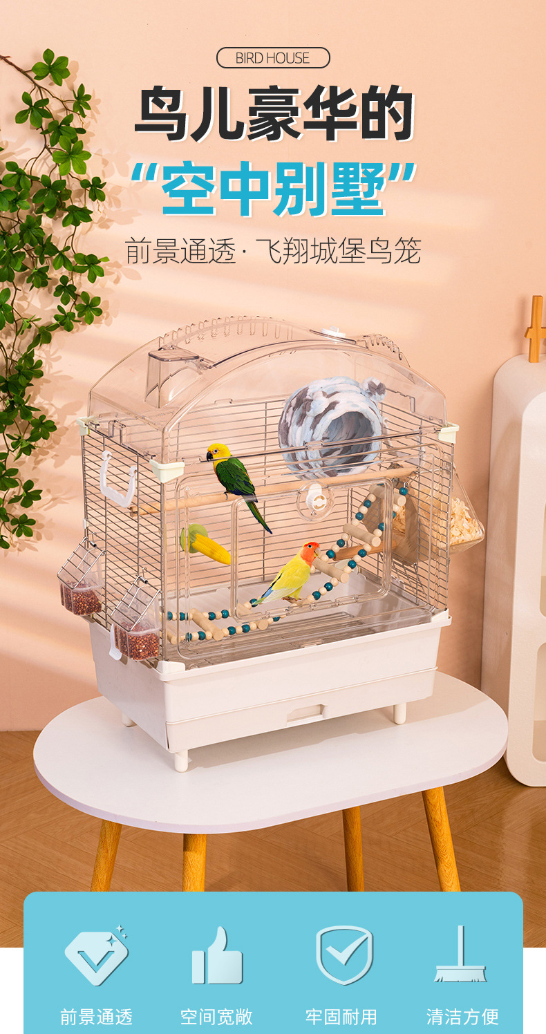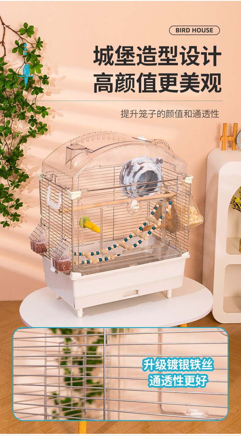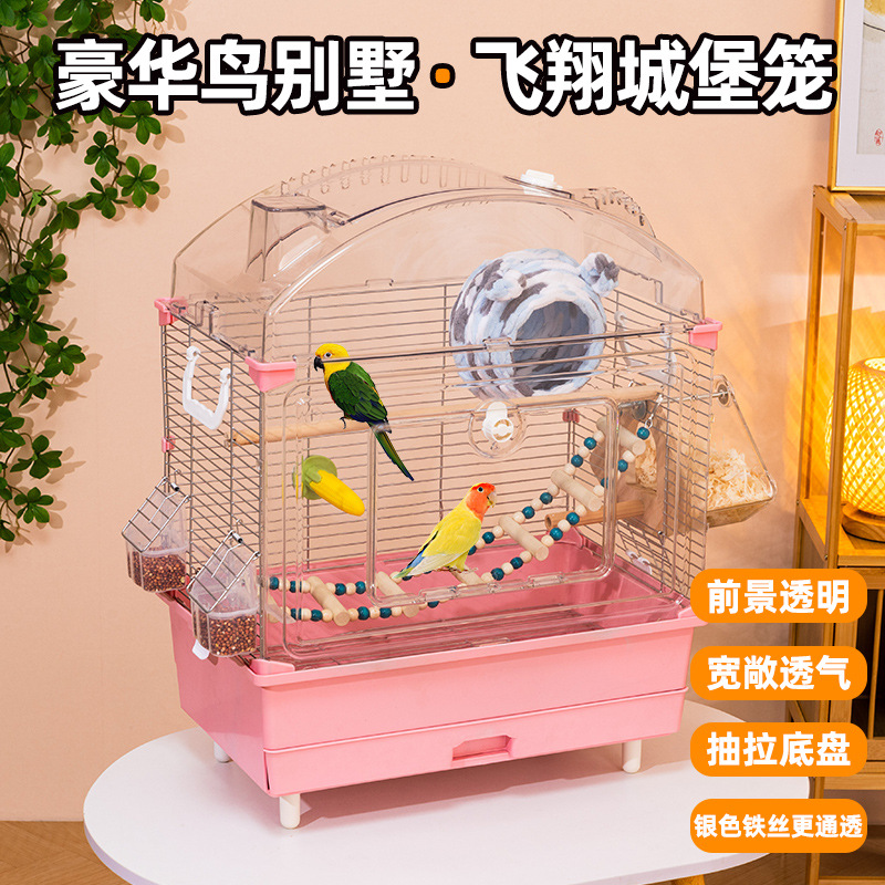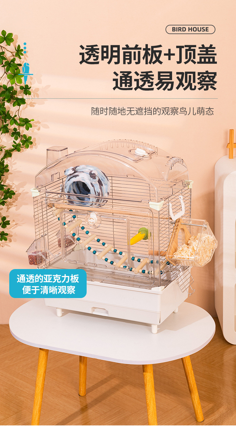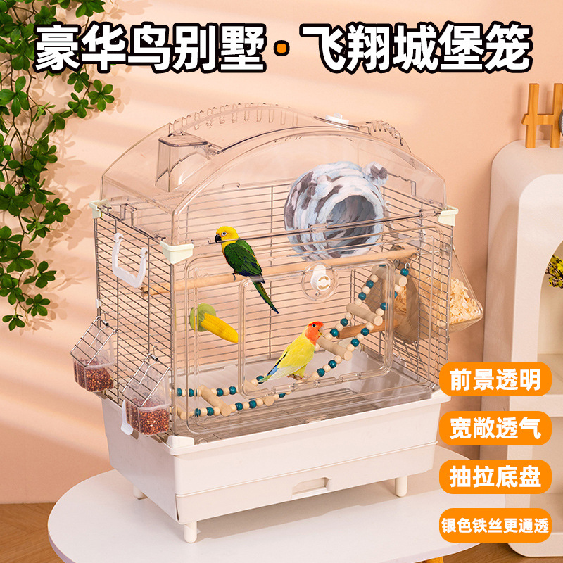 透明亚克力鸟笼鹦鹉鸟别墅笼玄凤牡丹文鸟绣眼大号鸟笼金属观赏笼