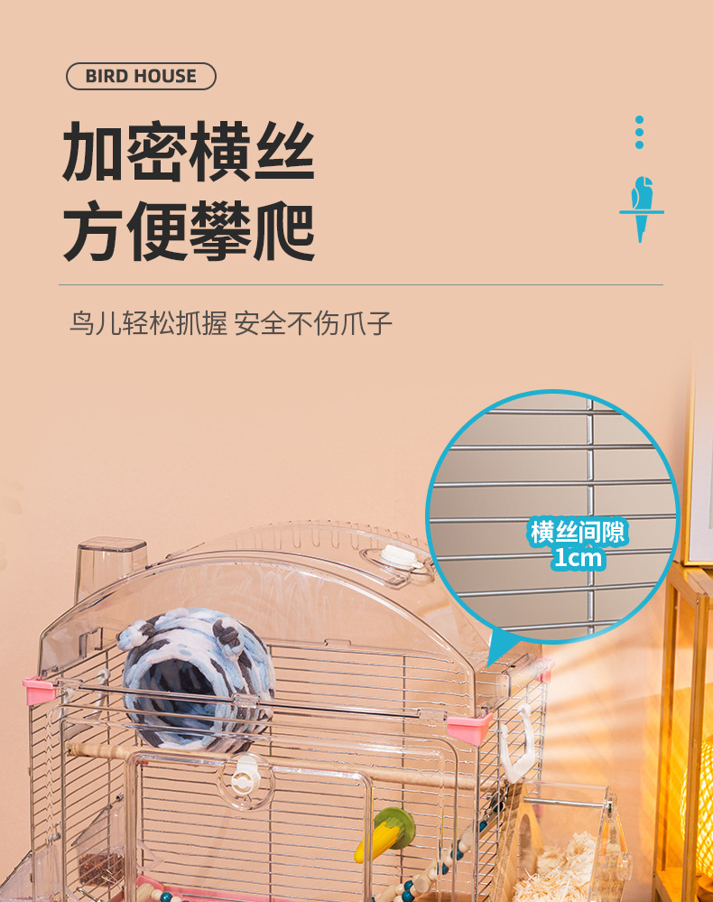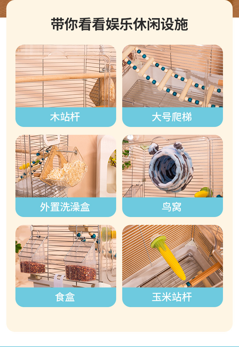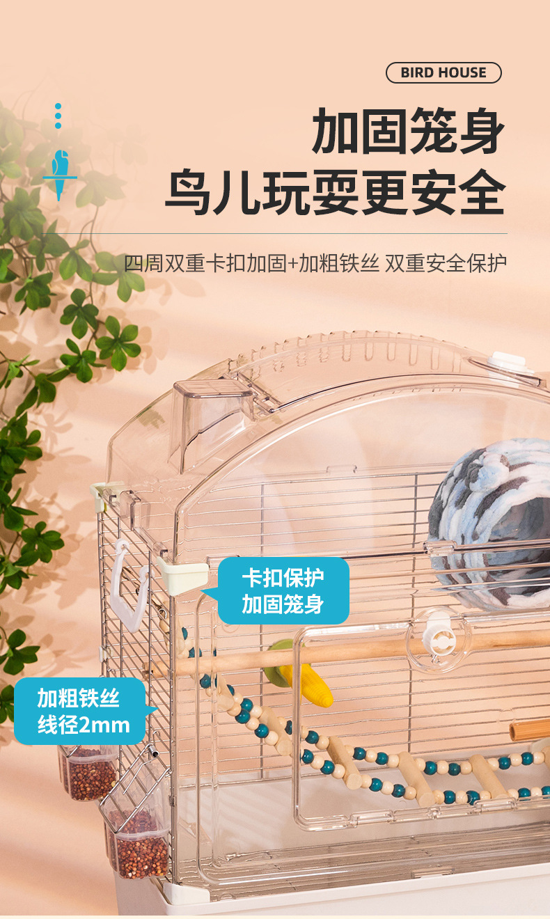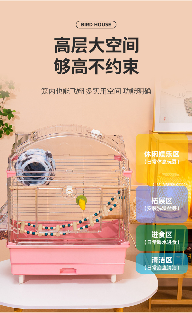 透明亚克力鸟笼鹦鹉鸟别墅笼玄凤牡丹文鸟绣眼大号鸟笼金属观赏笼