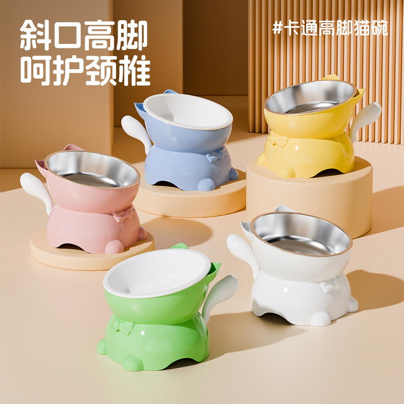 猫碗斜口护颈猫食盆脚猫咪饭碗水碗防打翻斜口不锈钢狗碗宠物用品
