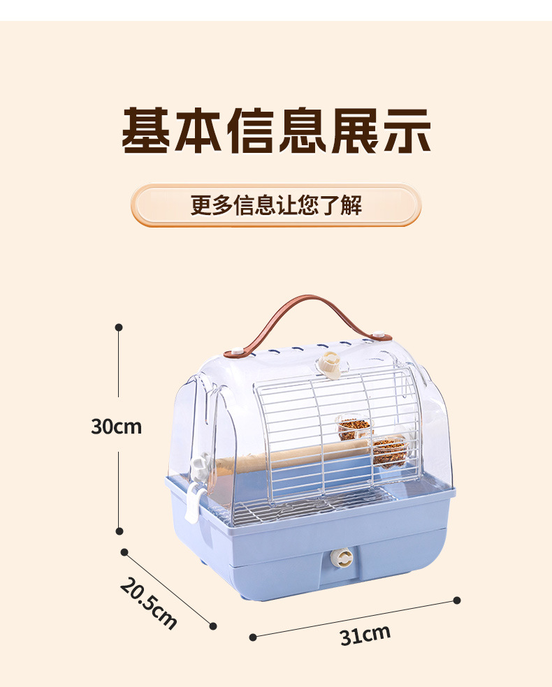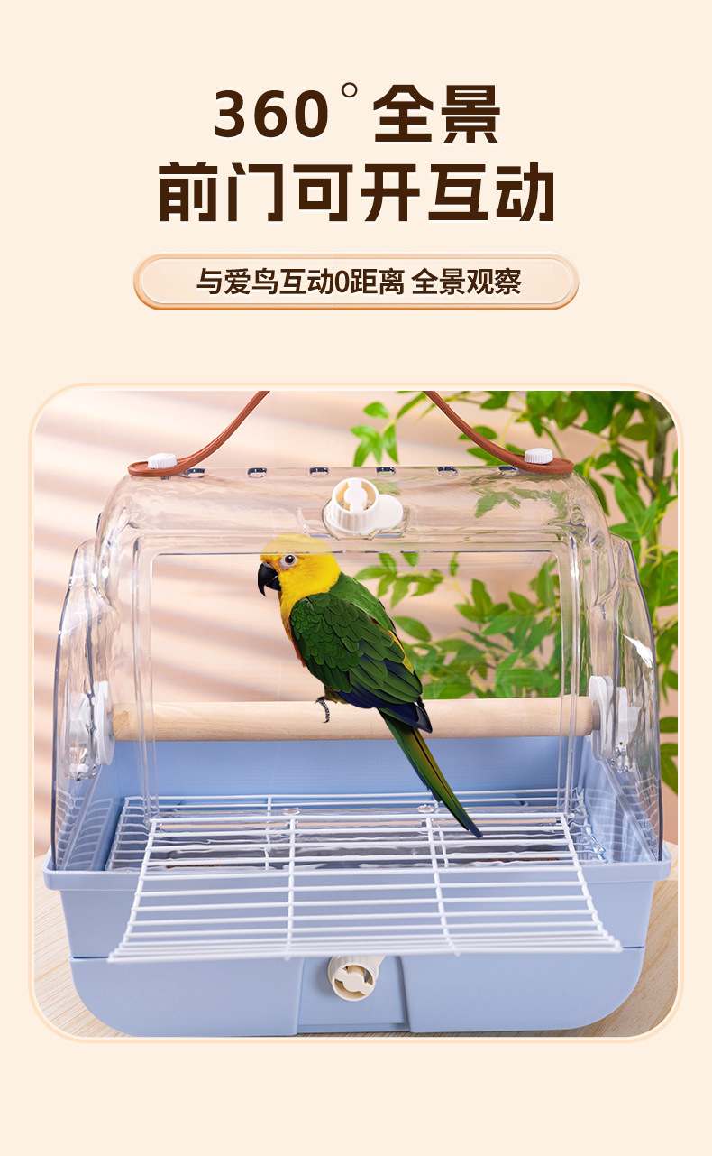 鸟笼鹦鹉笼子外带笼新款家用高端手提透明观赏玄凤虎皮外出笼