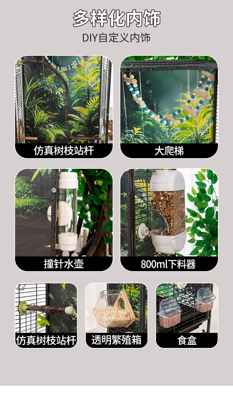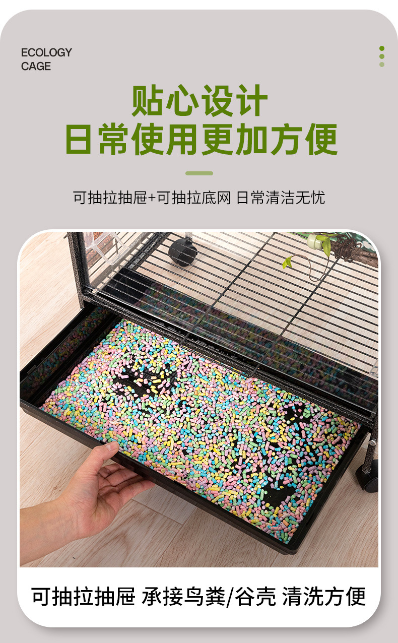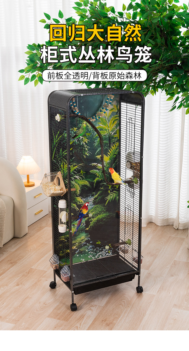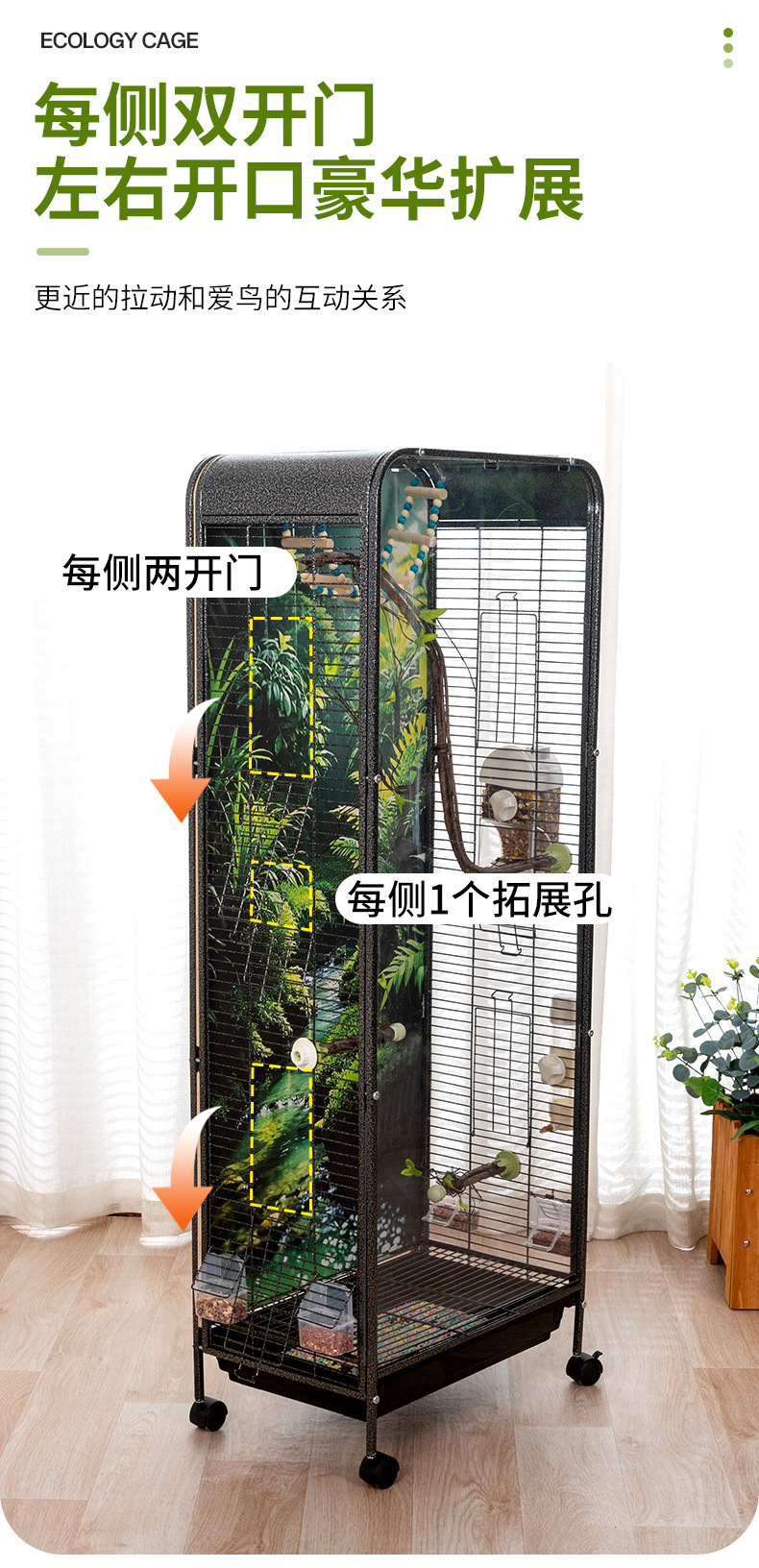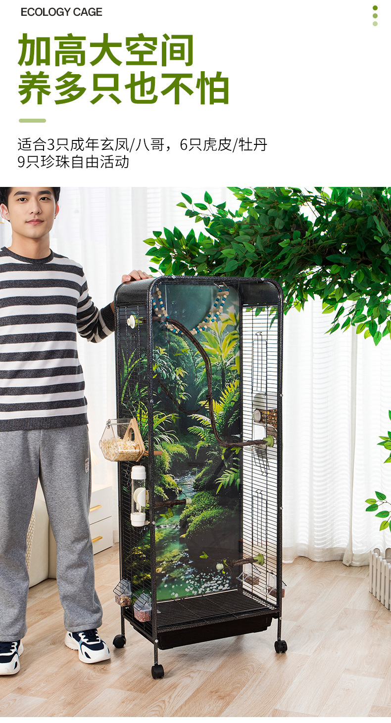 柜式鸟笼虎皮鹦鹉景观透明鸟笼玄凤牡丹文大号眼别墅鸟笼子生态笼