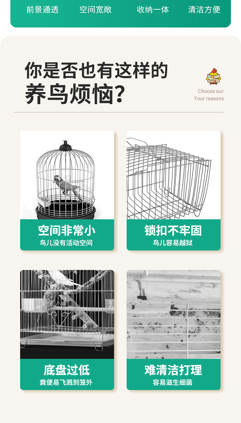 收纳鸟笼虎皮鹦鹉景观鸟笼玄凤牡丹文鸟绣眼大号别墅鸟笼子观赏笼