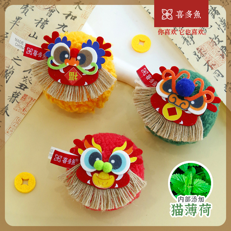 原创新款中国风醒狮铃铛球猫薄荷玩具耐咬逗猫宠物用品