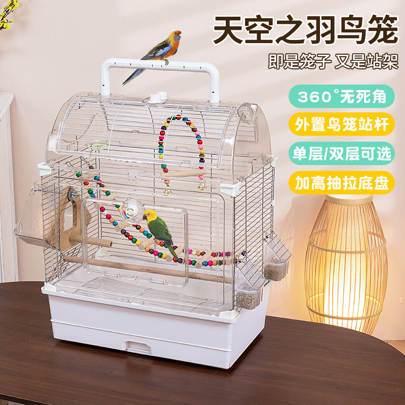 鹦鹉景观亚克力鸟笼玄凤牡丹文鸟绣眼大号别墅鸟笼子观赏四季通用