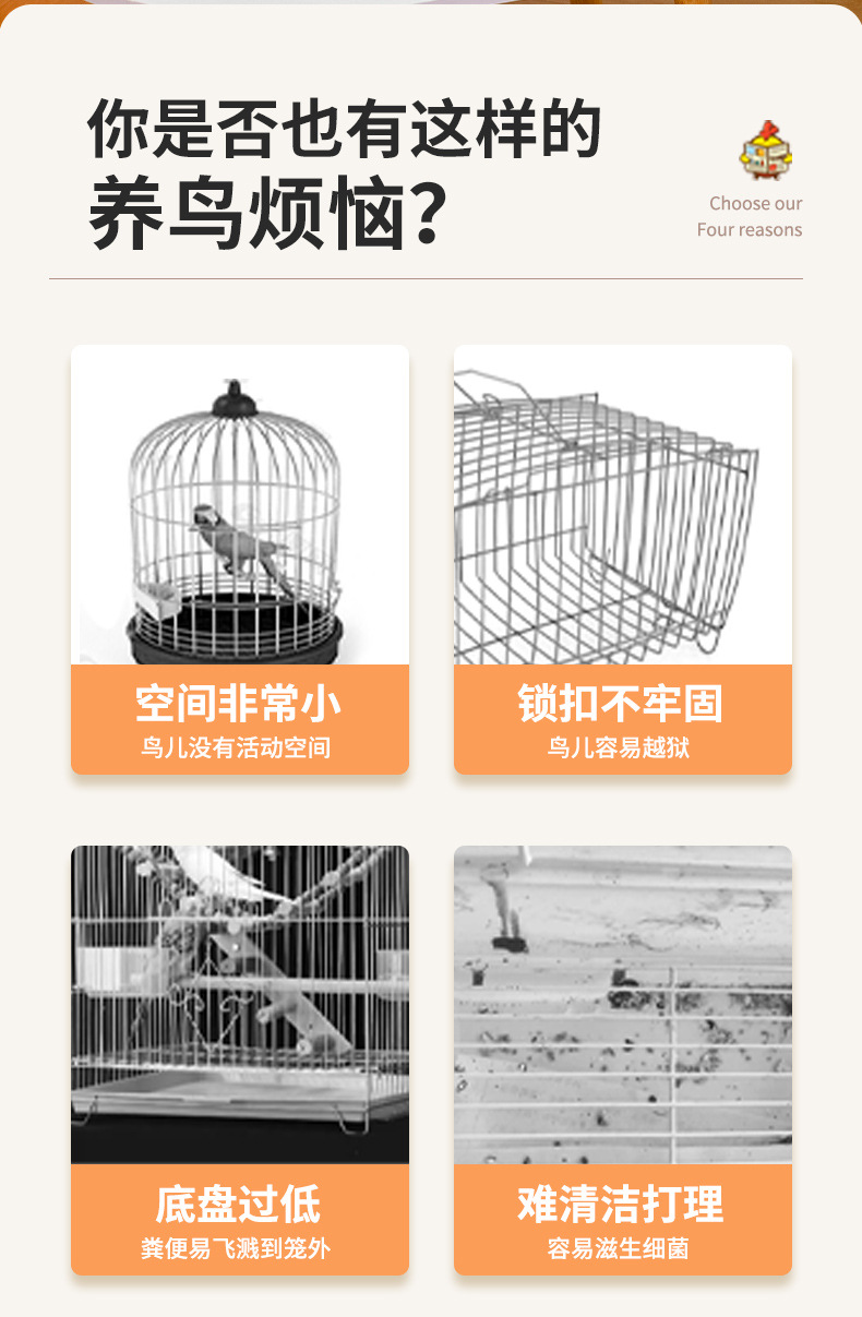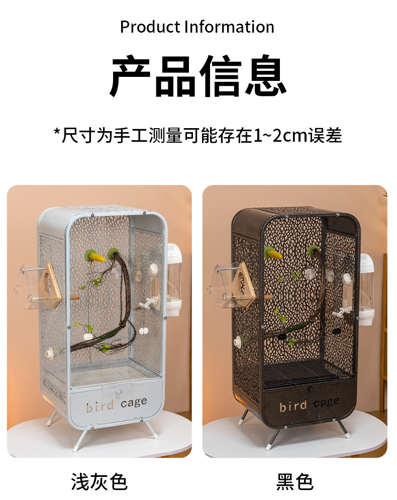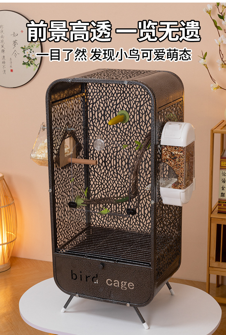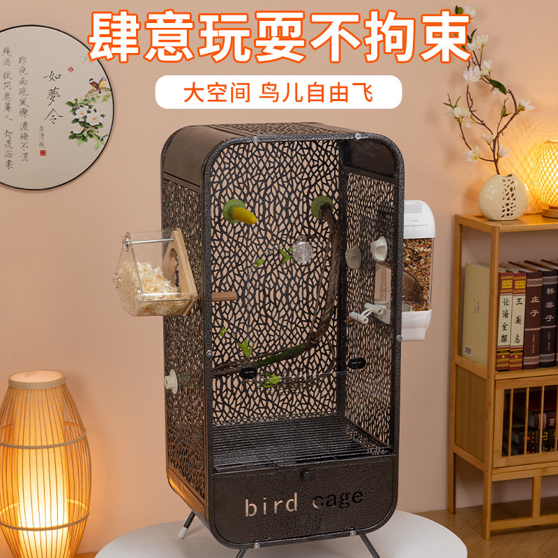 金属鸟笼子铁艺鸟笼鹦鹉方管笼子家用多层横丝繁殖玄凤特大号空间