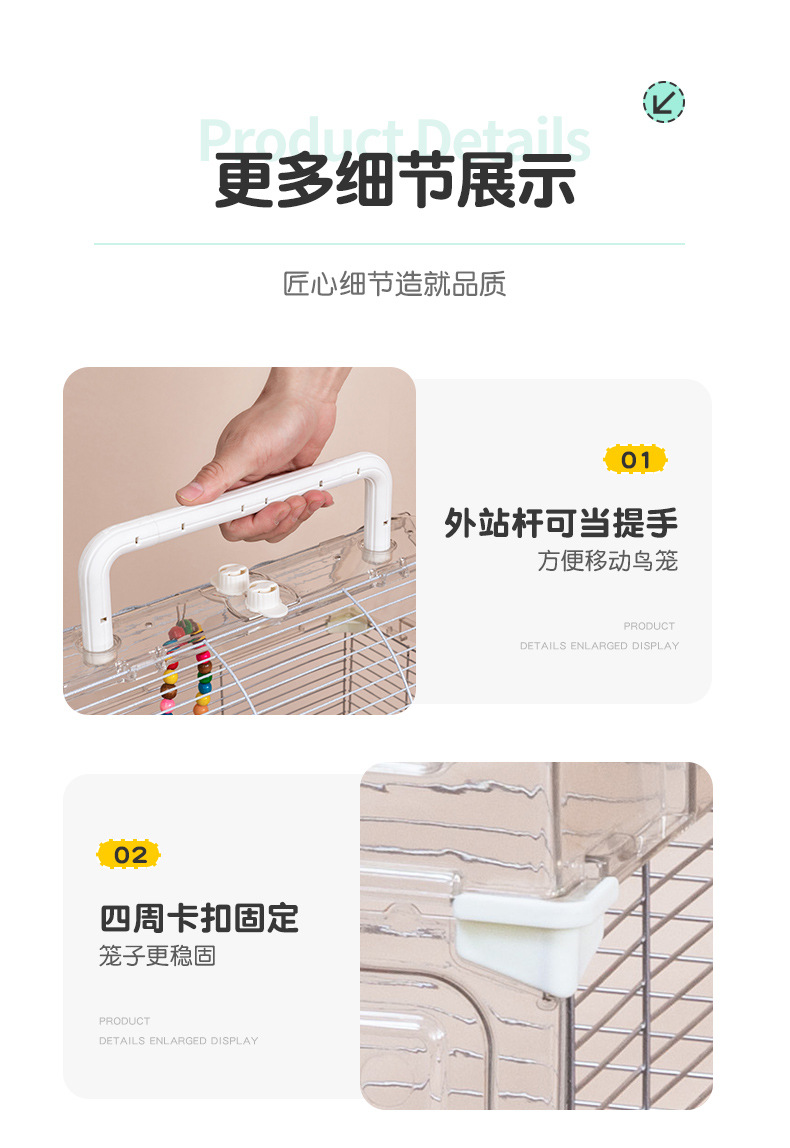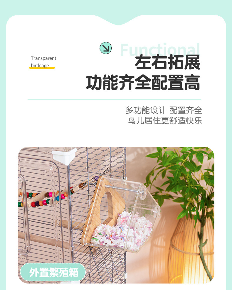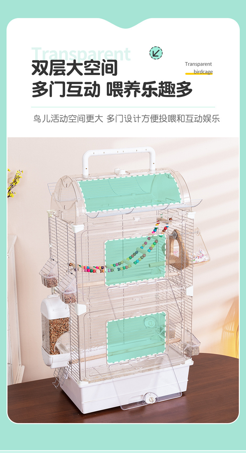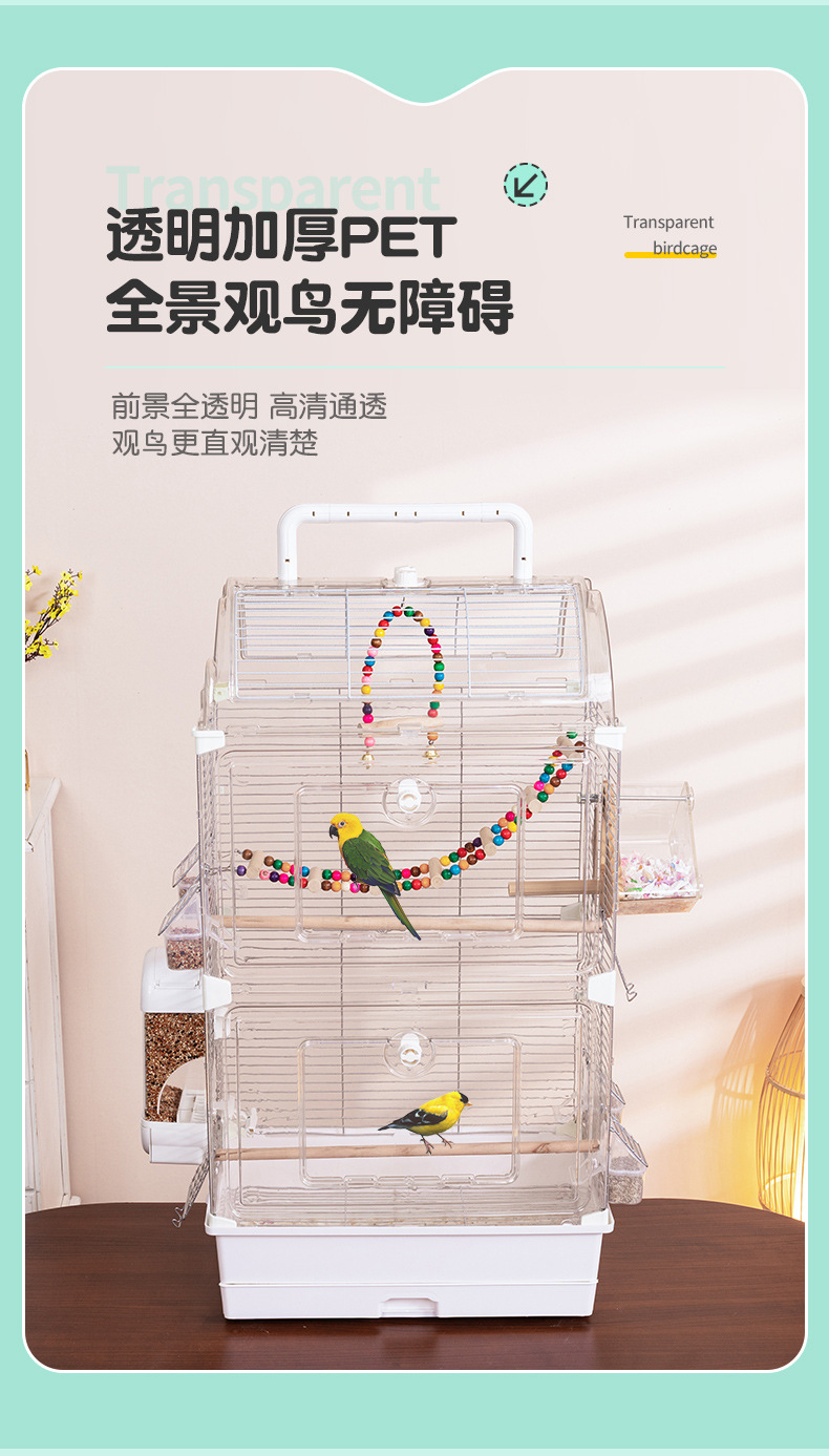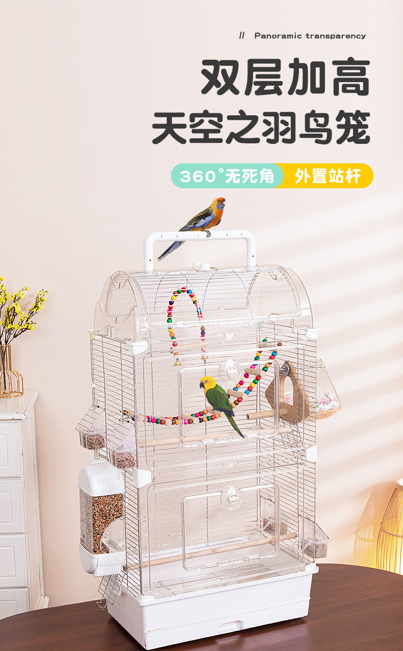 鸟笼透明鹦鹉景观亚克力鸟笼玄凤牡丹文鸟绣眼大号别墅鸟笼子观赏
