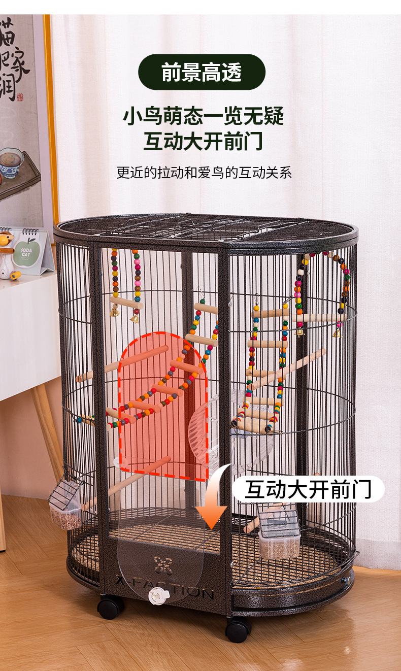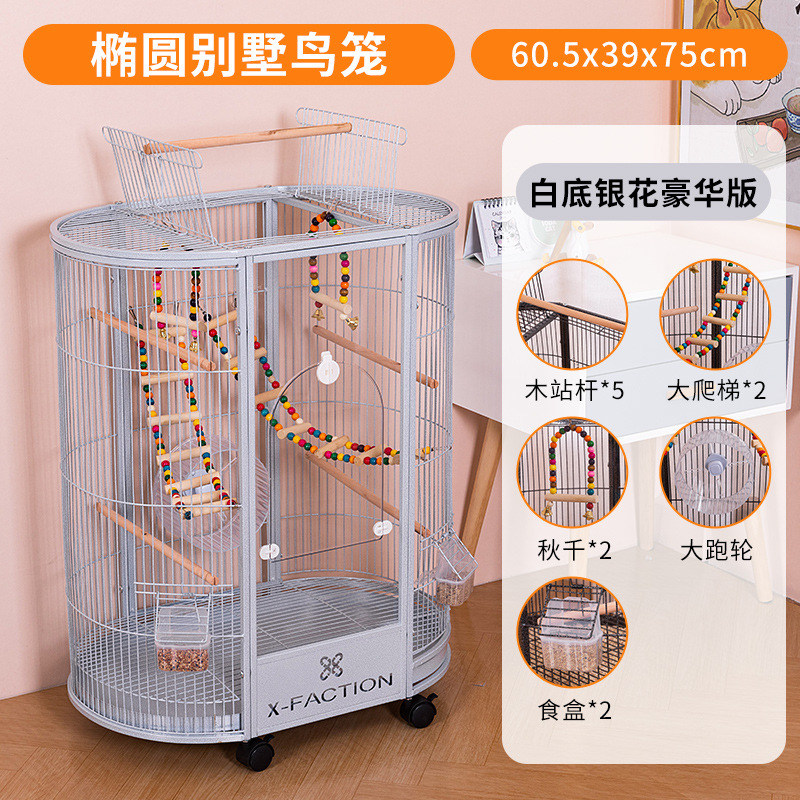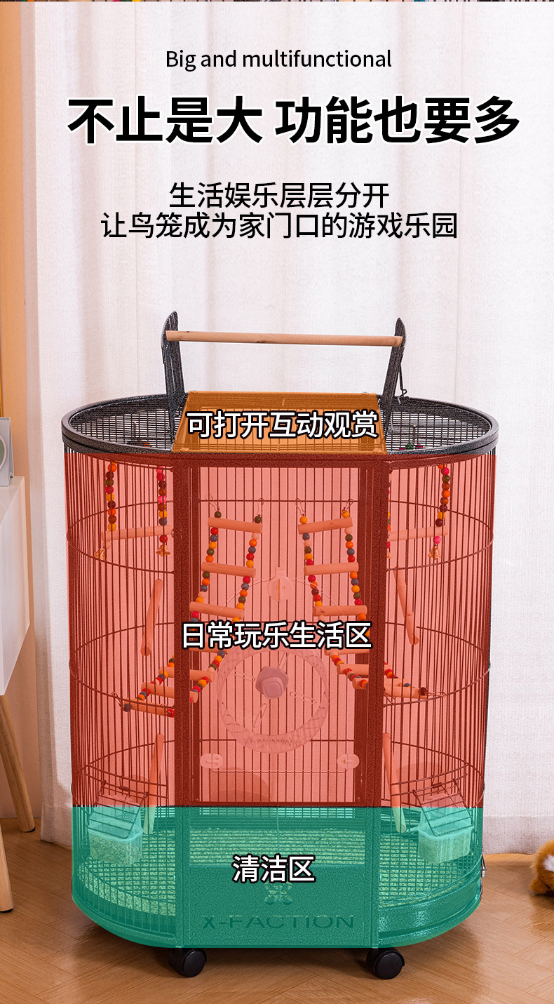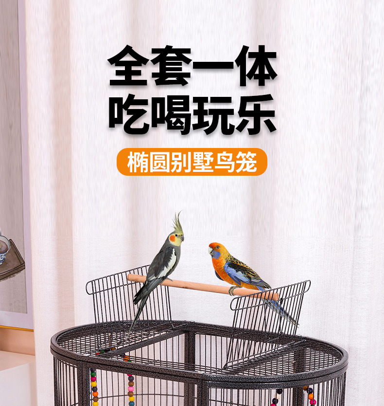 透明亚克力鸟笼鹦鹉笼子大号椭圆别墅鸟笼虎皮玄凤繁殖笼外置站台