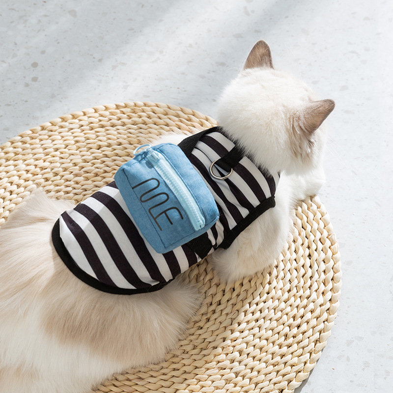 立体背包条纹牵引猫咪背心猫衣服防掉毛布偶无毛猫春夏款宠物服饰