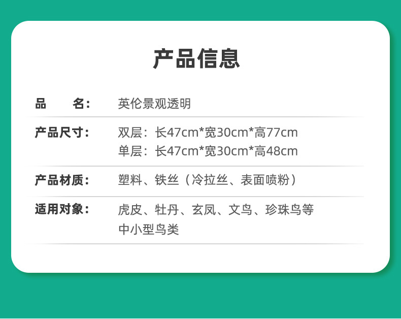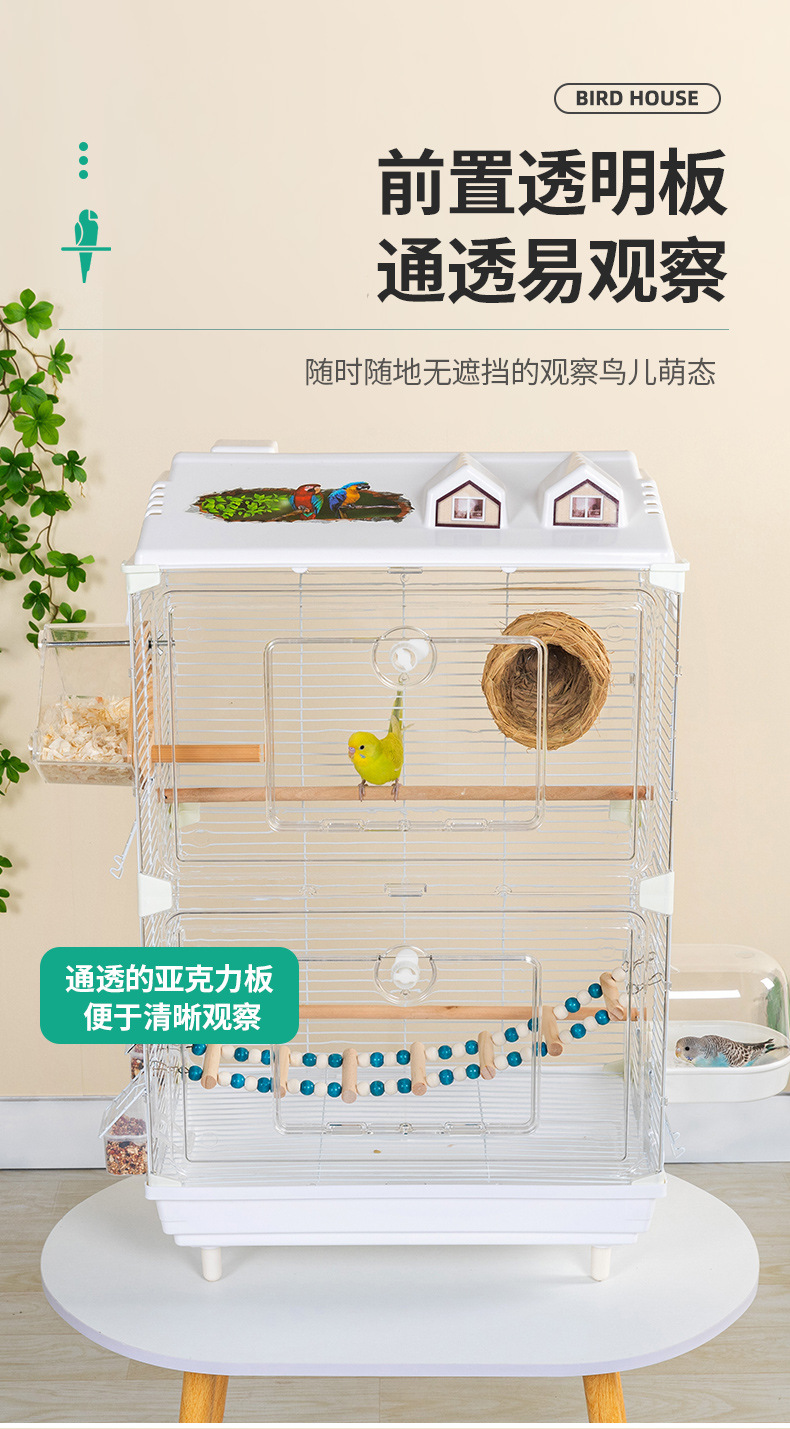 亚克力鸟笼虎皮鹦鹉景观鸟笼玄凤牡丹文鸟绣眼大别墅鸟笼子观赏笼