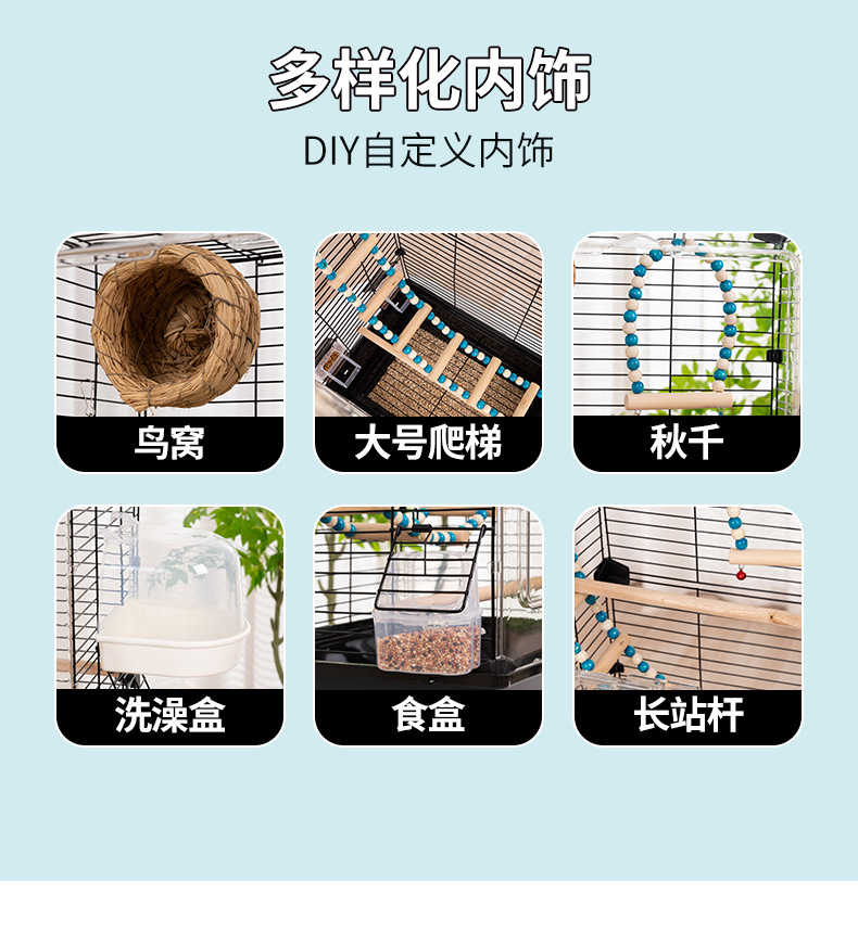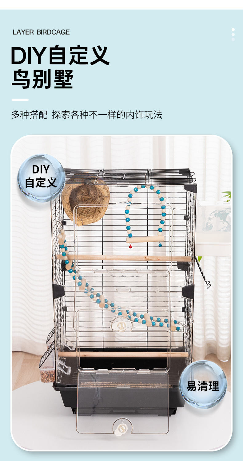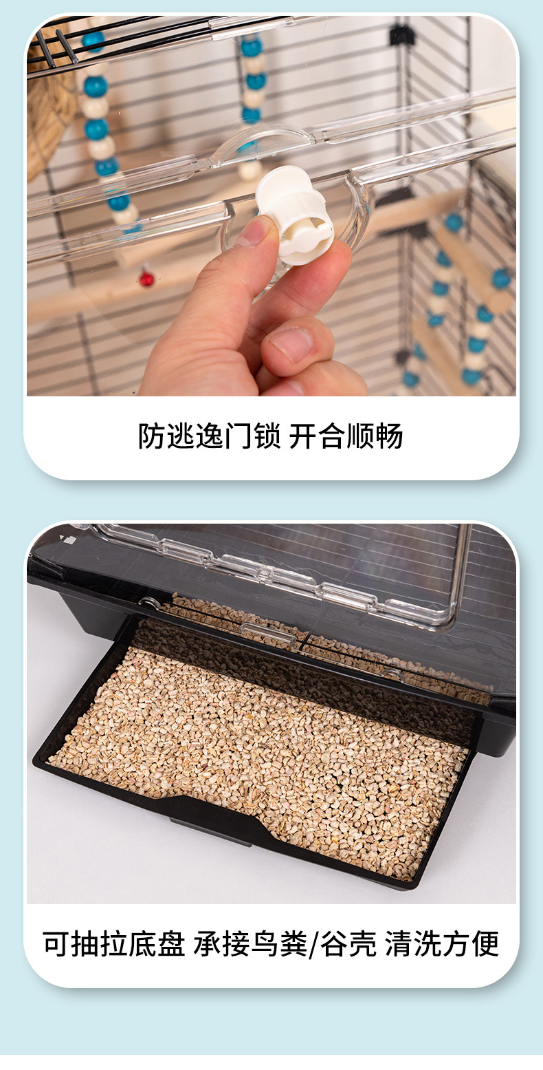 观赏鸟笼鹦鹉笼子大小号外带加高亚克力鸟笼家用别墅大空间全套