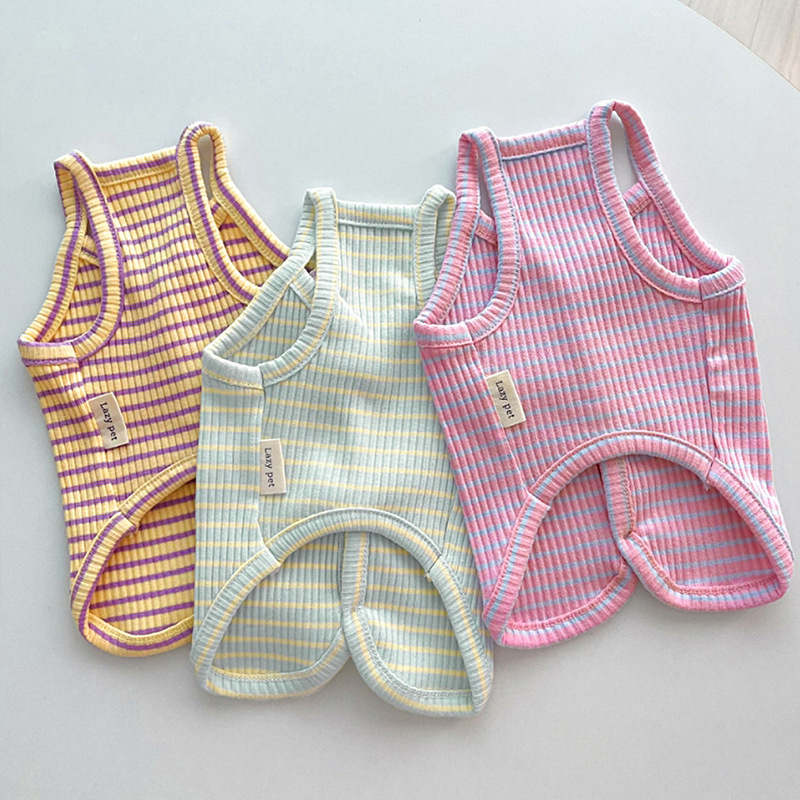 清新条纹吊带狗狗春夏透气夏季衣服宠物服装猫咪两脚衣猫猫服饰