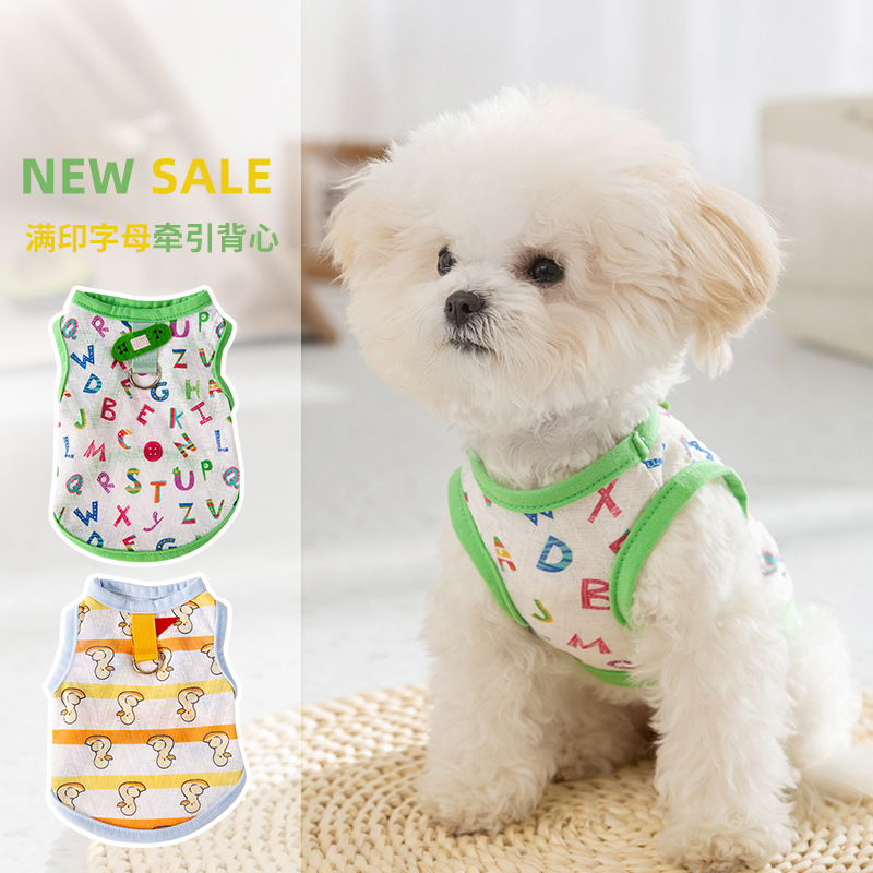 满印清凉牵引背心狗狗夏天衣服泰迪法斗柯基服装宠物夏装薄款服饰