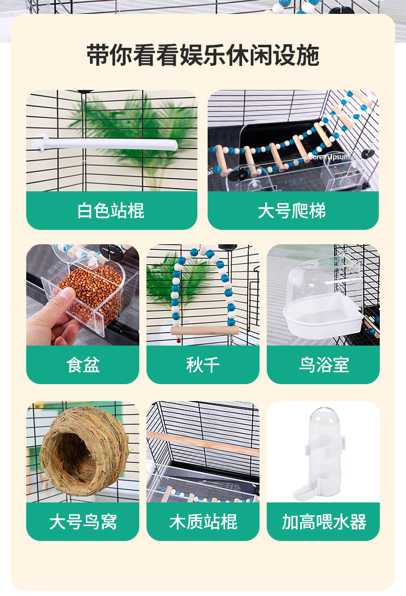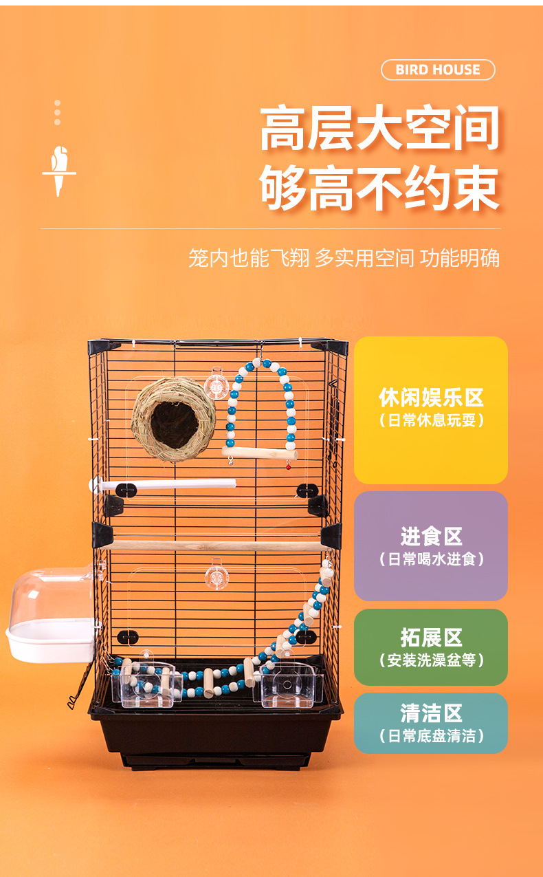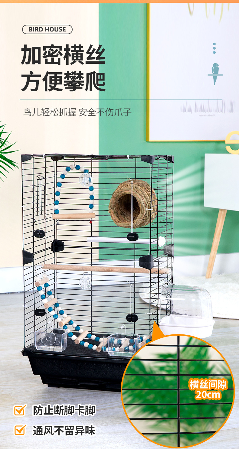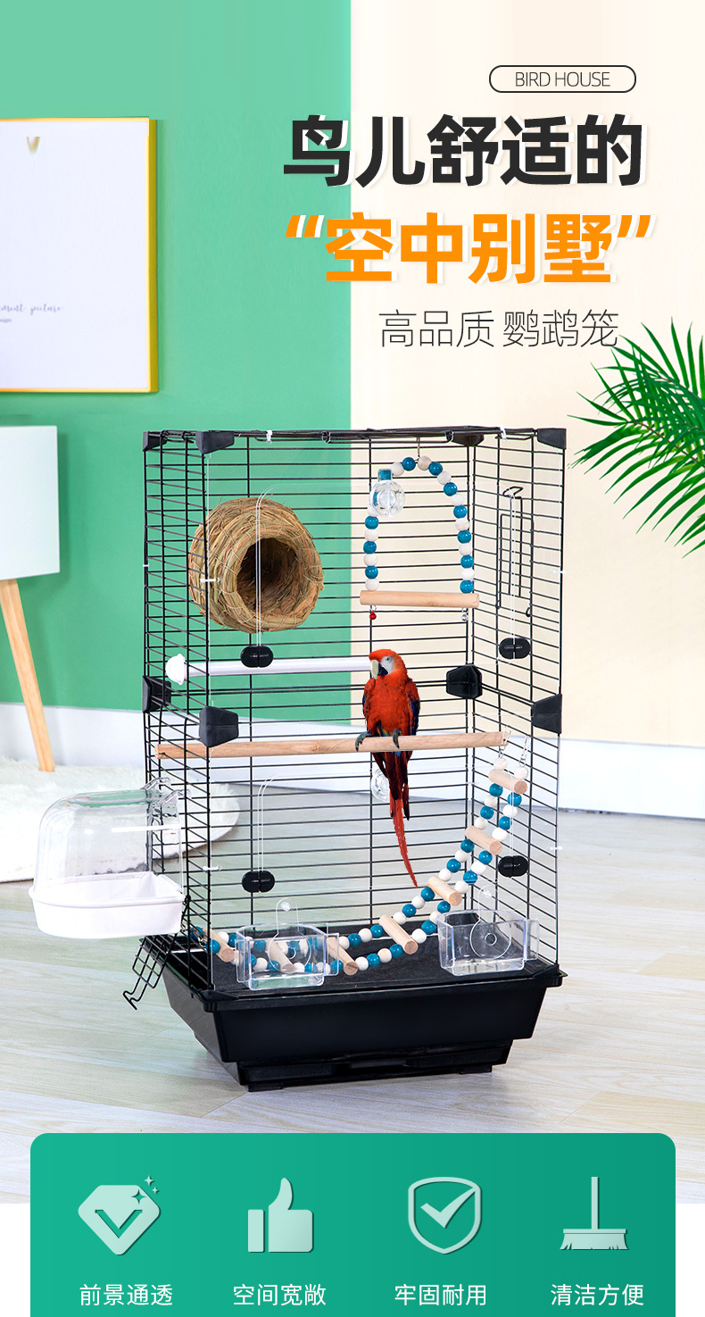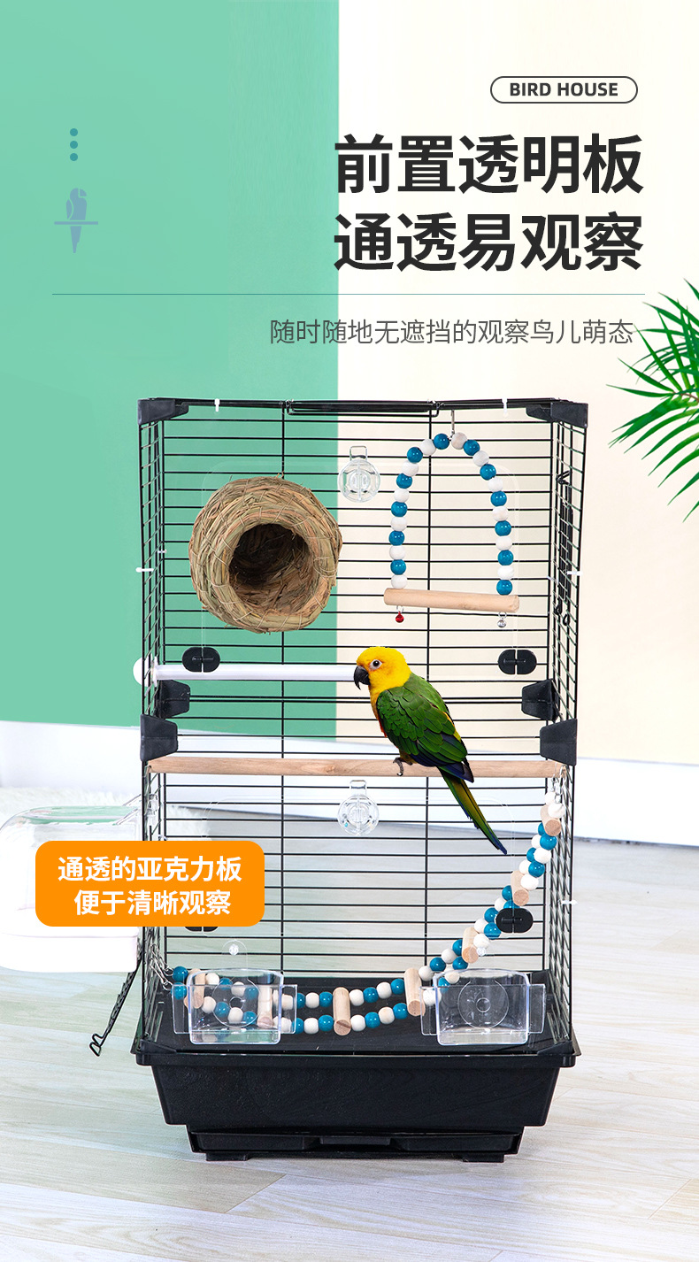 亚克力鹦鹉鸟笼别墅公寓笼虎皮牡丹大号家用别墅大空间鸟笼观赏笼