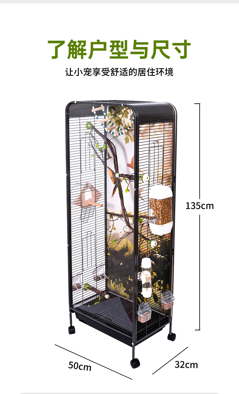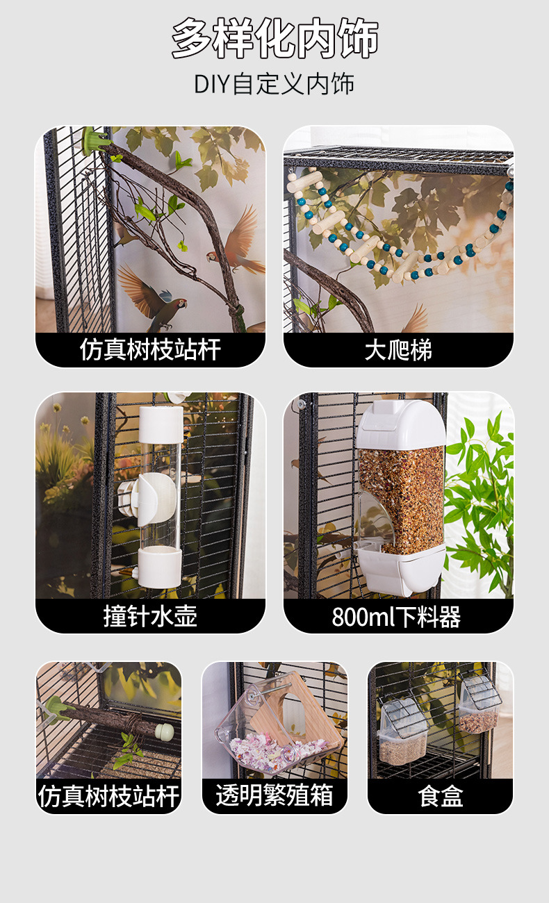 柜式亚克力鸟笼鹦鹉笼子虎皮牡丹玄凤大号鸟别墅大空间观赏笼透明