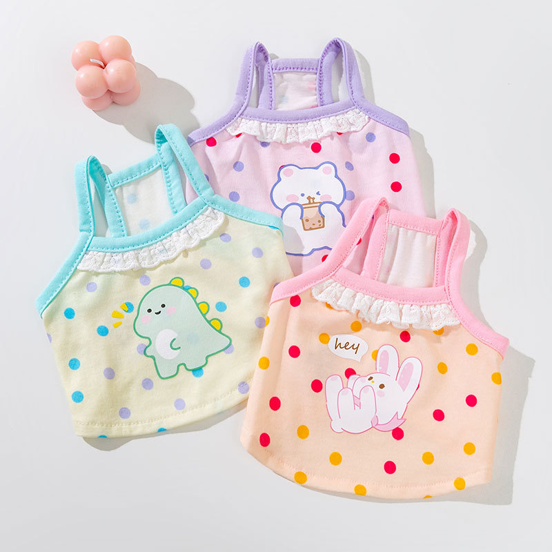 春夏季小狗狗可爱印花波点吊带中小型犬泰迪比熊猫咪两脚宠物衣服