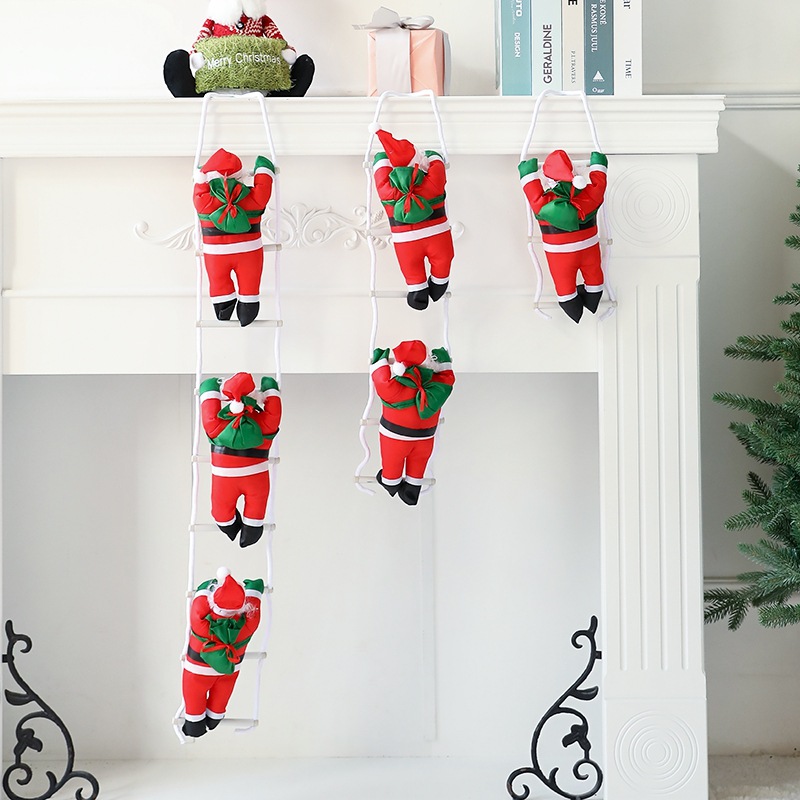 圣诞老人爬梯桌面创意摆件圣诞节装饰品场景布置挂件圣诞树挂饰