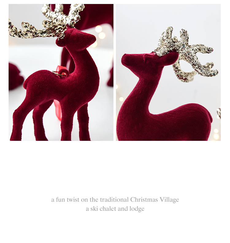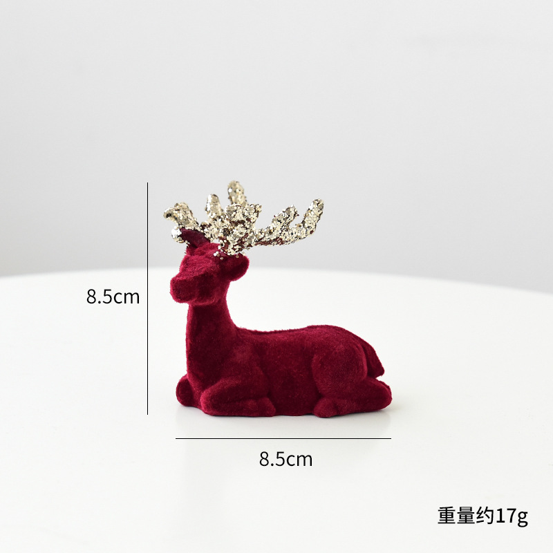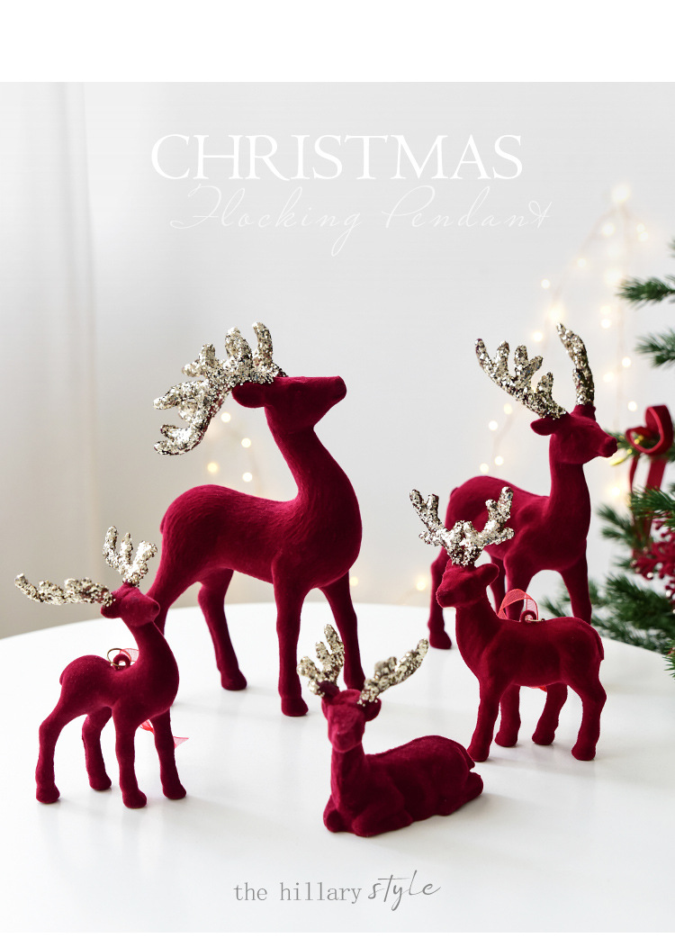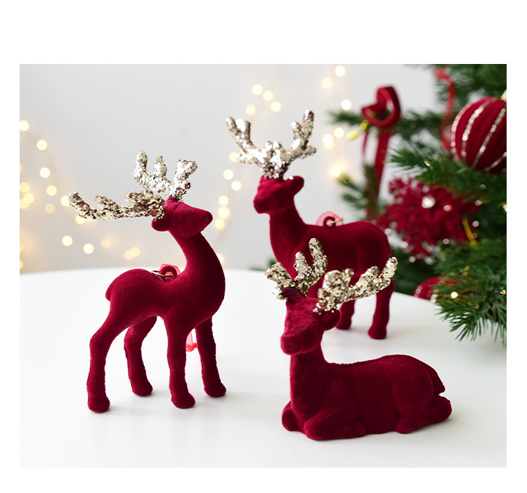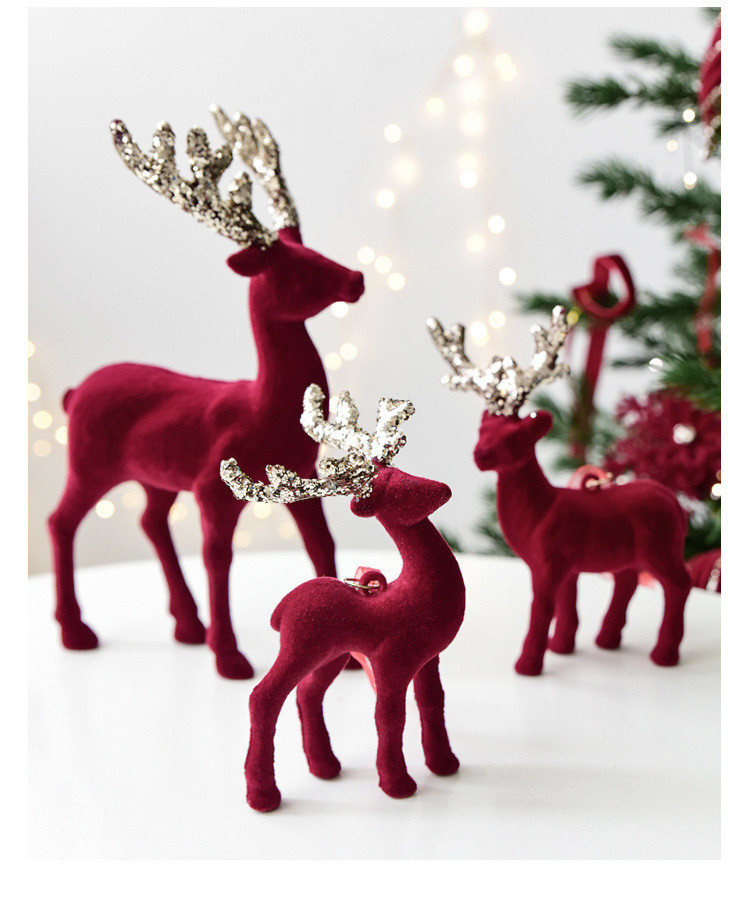 NUCHI圣诞节装饰麋鹿桌面摆件圣诞树装饰挂饰闪粉酒红植绒鹿挂件