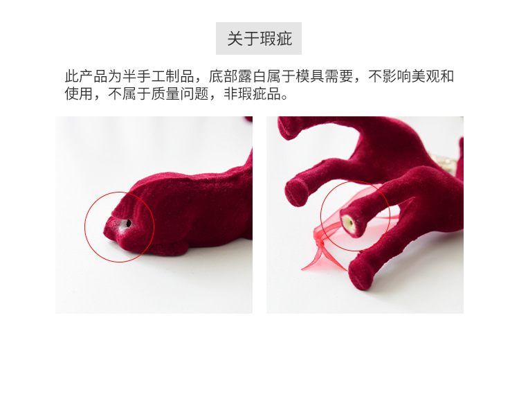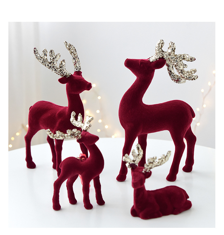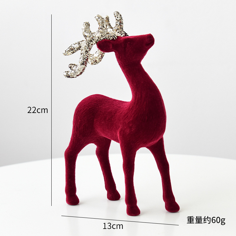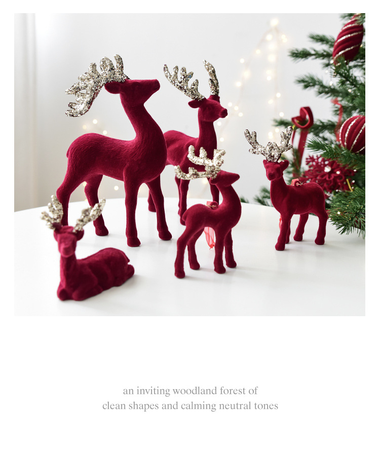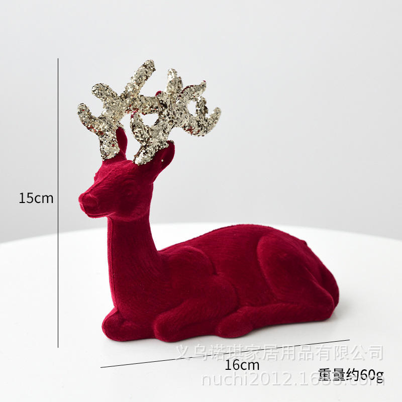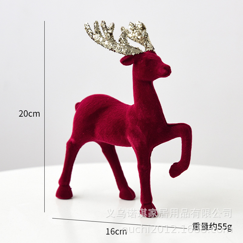NUCHI圣诞节装饰麋鹿桌面摆件圣诞树装饰挂饰闪粉酒红植绒鹿挂件