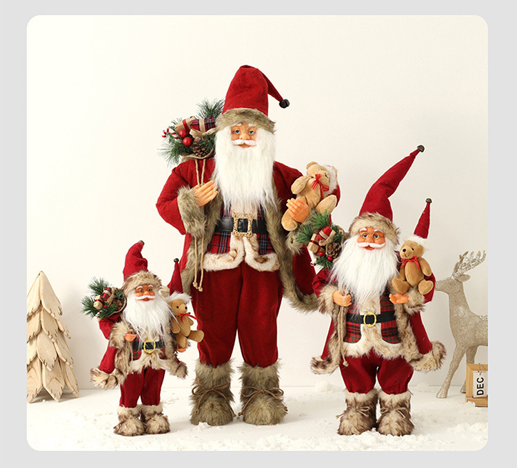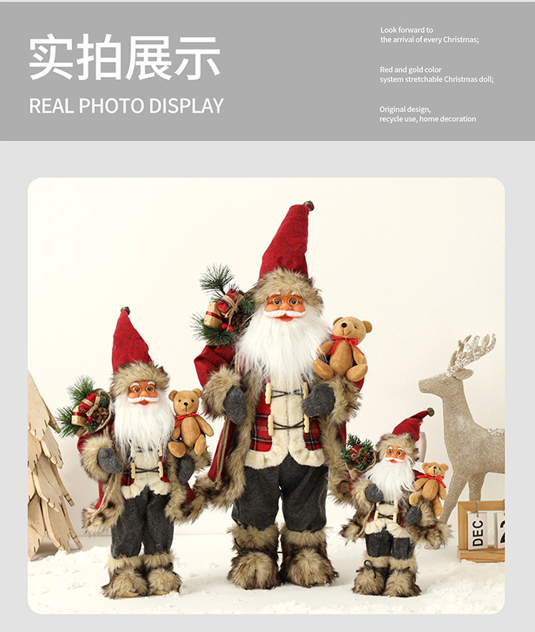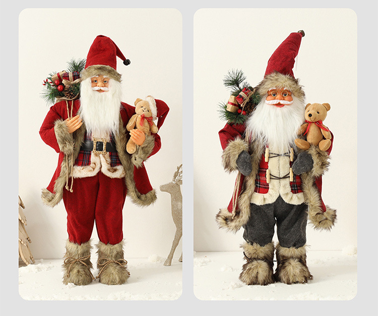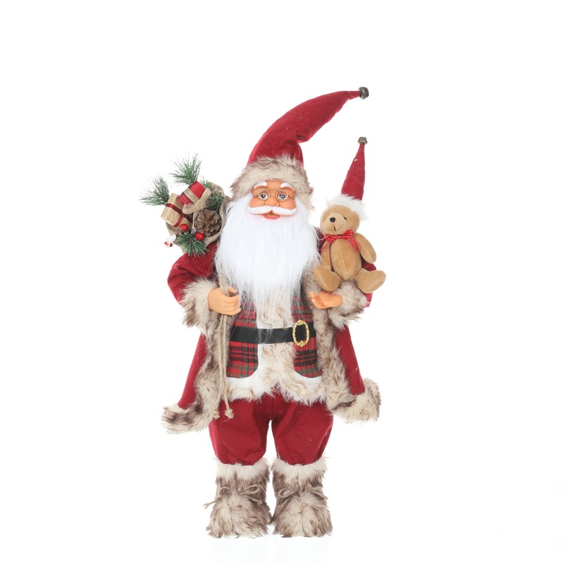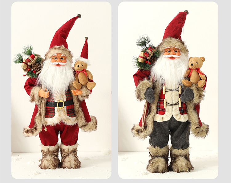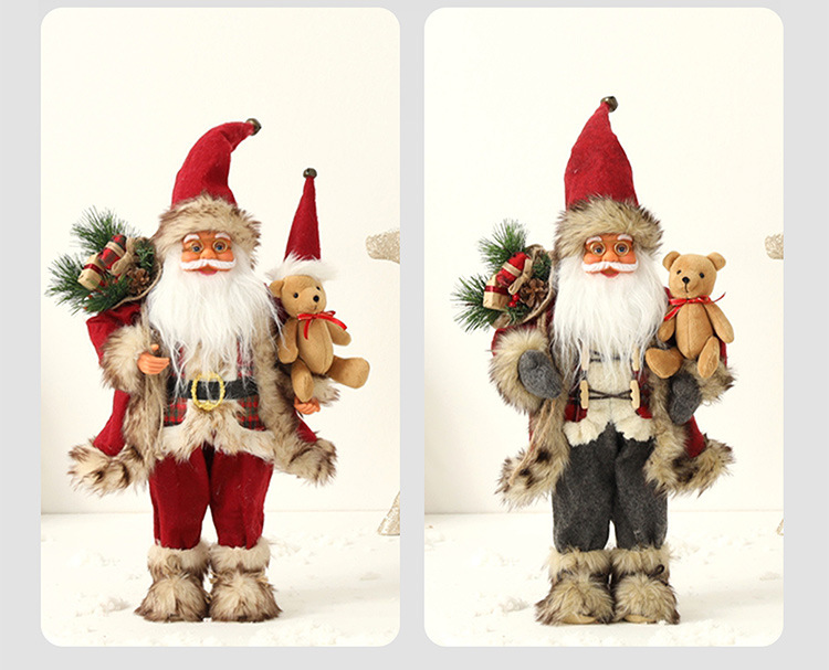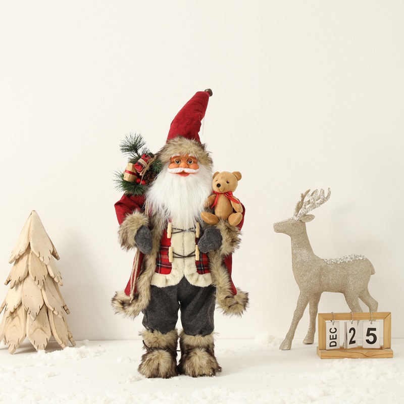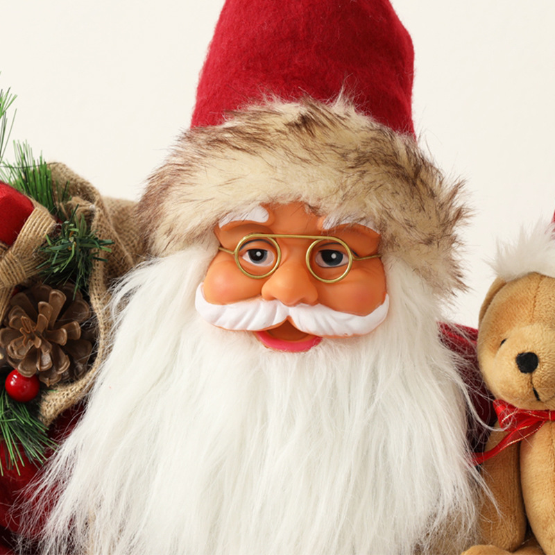 新品圣诞节装饰圣诞老人玩偶抱熊毛绒公仔摆件圣诞工艺品